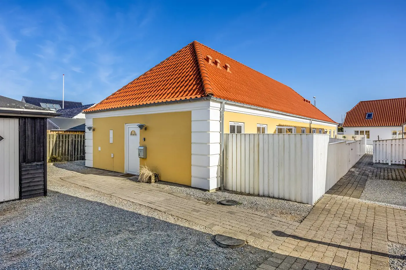 Die Ferienunterkunft liegt auf einem 130 m² großen Gartengrundstück. Das Grundstück ist eingezäunt. Die Entfernung zum Meer beträgt 300 m. Die nächste Einkaufsmöglichkeit liegt 300 m entfernt. Es steht ein geschlossenes Terrassenareal zur Verfügung.