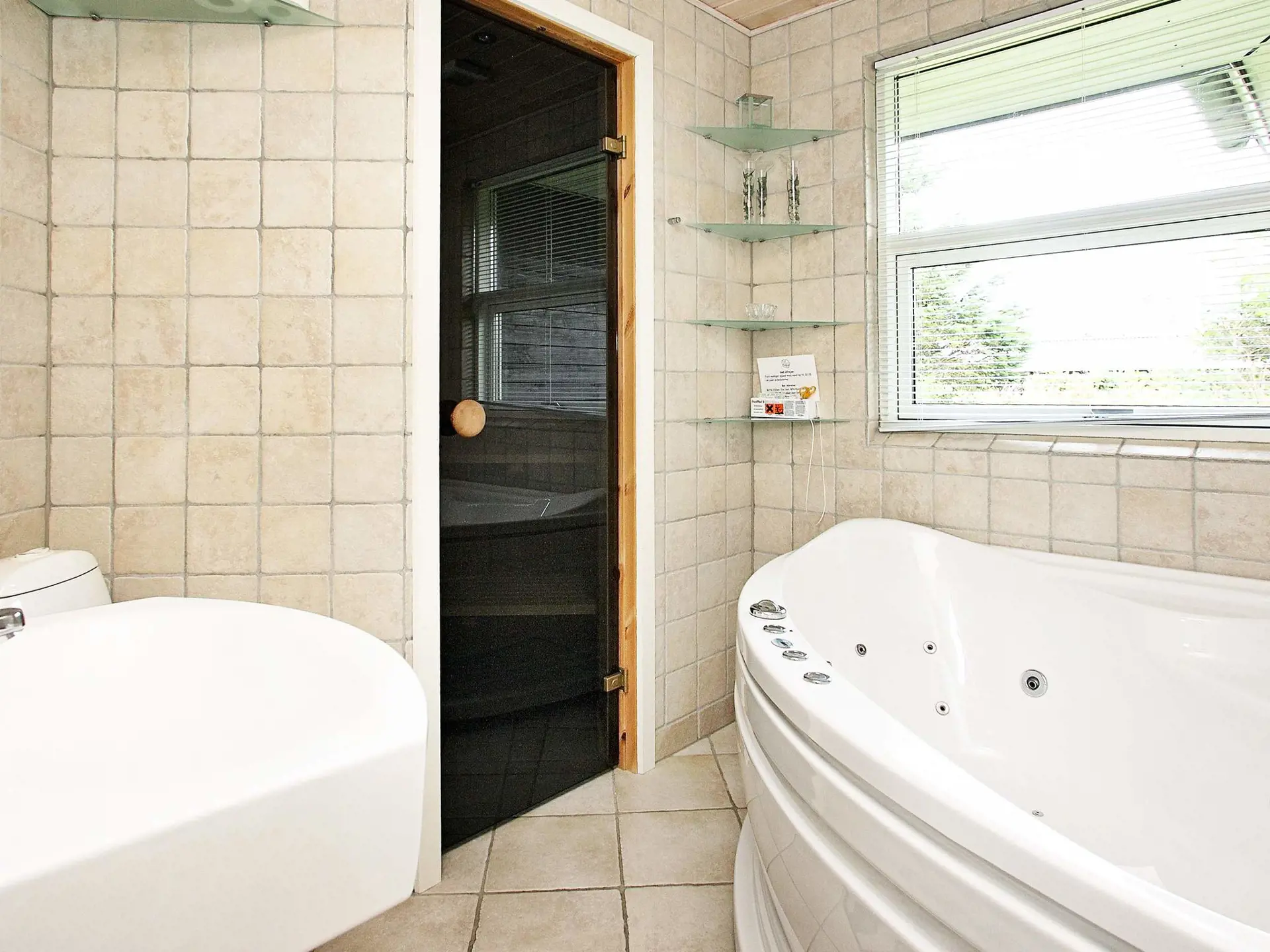 Strand, Meer und der Badeort Lønstrup sind von diesem Ferienhaus zu Fuß gut erreichbar. Es liegt im landschaftlich attraktiven Feriengebiet Harrerenden und verfügt über einen Küchen-Wohnbereich, drei Schlafzimmer, einen Hems und zwei Bäder, von denen das eine mit Whirlpool und Sauna ausgestattet ist. Ein Holzofen sorgt für gemütliche und kostengünstige Erwärmung. Die Einrichtung ist modern, mit Möbeln im dänischen Design.