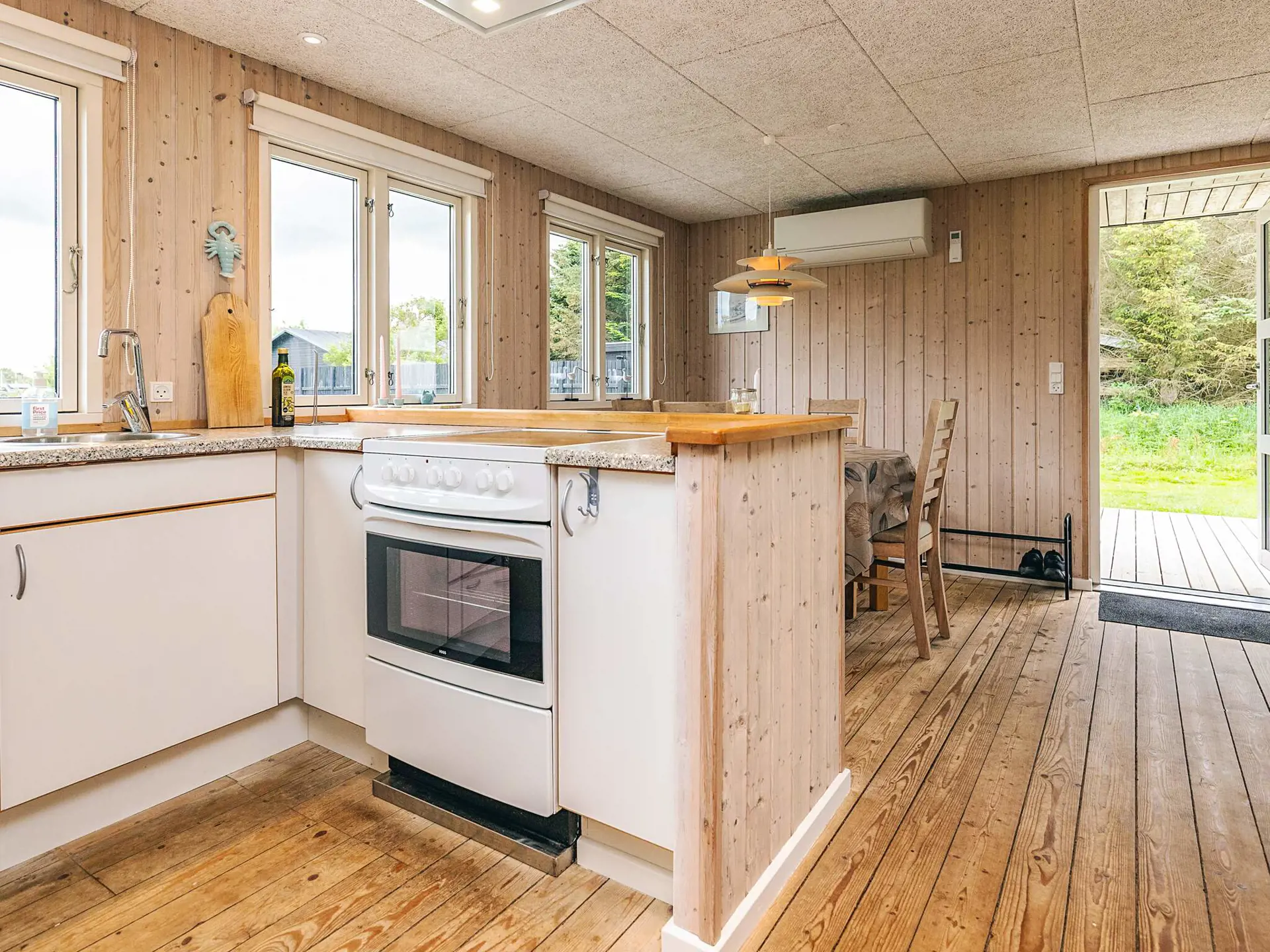 Gemütliches Ferienhaus in ruhiger Lage auf einem Naturgrundstück. Wohnliches Ambiente mit Holzofen und gut ausgestattetem Küchenbereich. Das Bad wurde 2011 modernisiert. Überdachte Terrasse. Das Haus liegt in der Nähe vom reizvollen Fischerdorf Lønstrup, in dem es kl. Geschäfte, Galerien, Töpfereien und nette Gaststätten gibt. Besuchen Sie den teils versandeten Leuchtturm von Rudbjerg Knude.