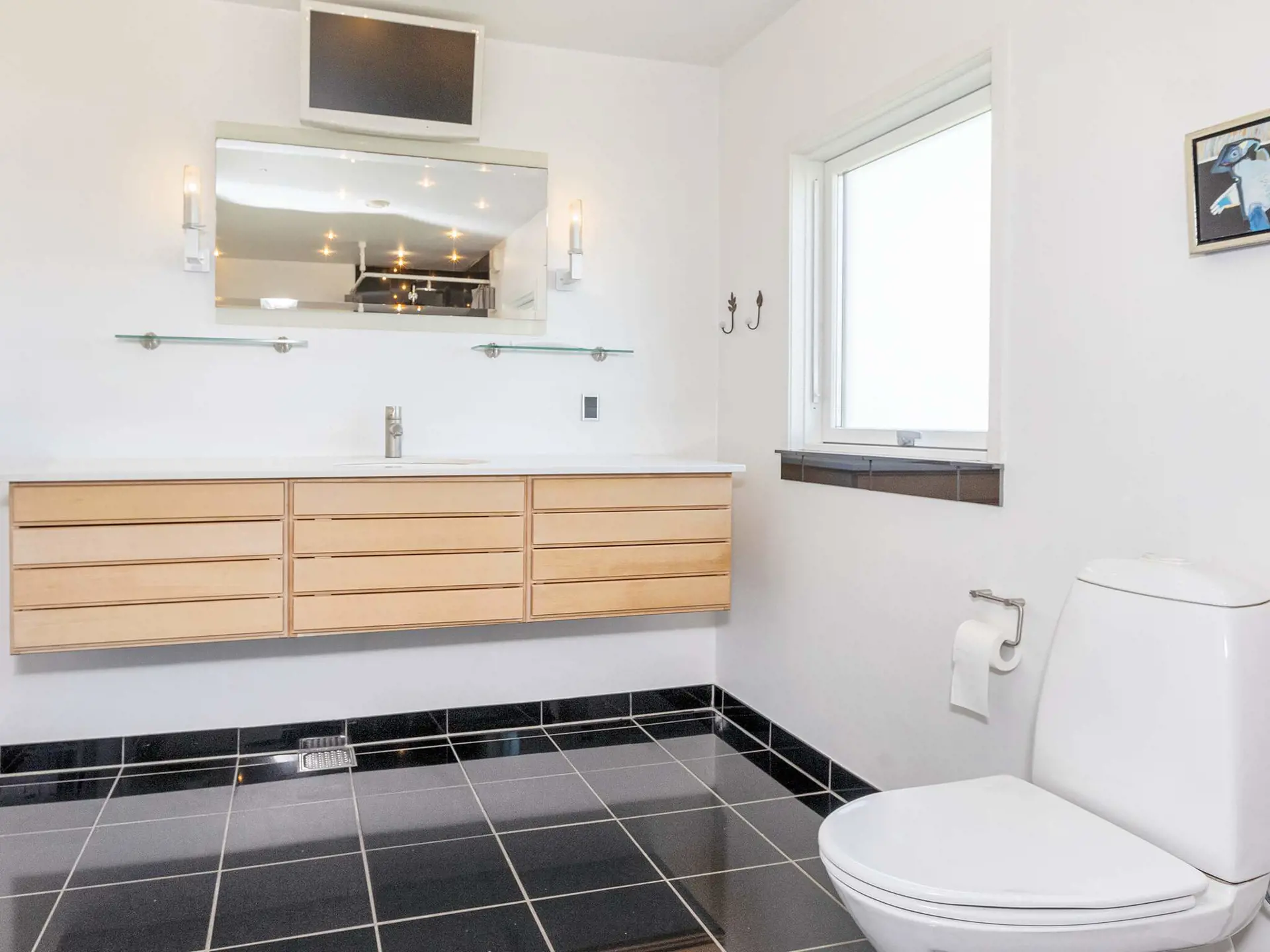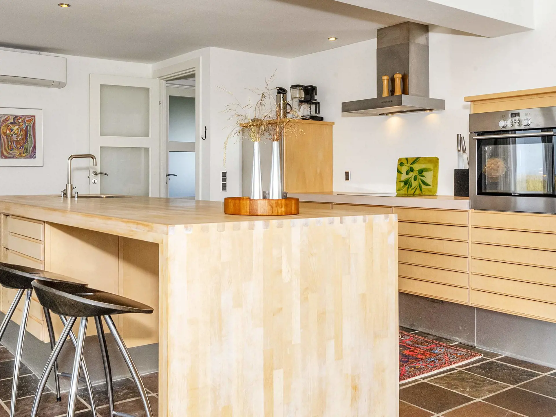 Unten offener Küchen-/Wohnbereich für das Familienleben mit viel Platz für alle. Wenn Sie Ruhe brauchen, gibt es auch ein zweites Wohnzimmer im 1. Stock. Das Ferienhaus hat einen Fernseher mit Chromecast zum Streamen eigener TV-Anbieter. Zur umfassenden Ausstattung des Ferienhauses gehören auchg zwei klimafreundliche Wärmepumpen, Waschmaschine, Wäschetrockner und 50 Liter Gefrierfach. Das Badezimmer des Hauses enthält eine schöne Whirlwanne für 1 Person. Das Badezimmer hat angenehme Fußbodenheizung.