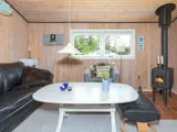 Das Ferienhaus ist mit einem schönen Wohnzimmer mit Holzofen in offener Verbindung zur Küche ausgestattet. Die Küche enthält u.a. Geschirrspüler. Darüber hinaus gibt es ein funktionelles Badezimmer und drei Schlafzimmer mit Etagenbetten bzw. Einzelbett. Im Haus befindet sich auch eine Waschmaschine.