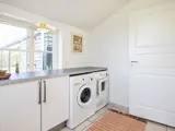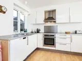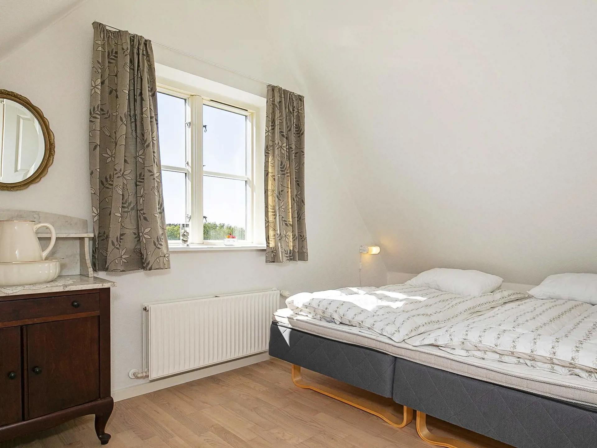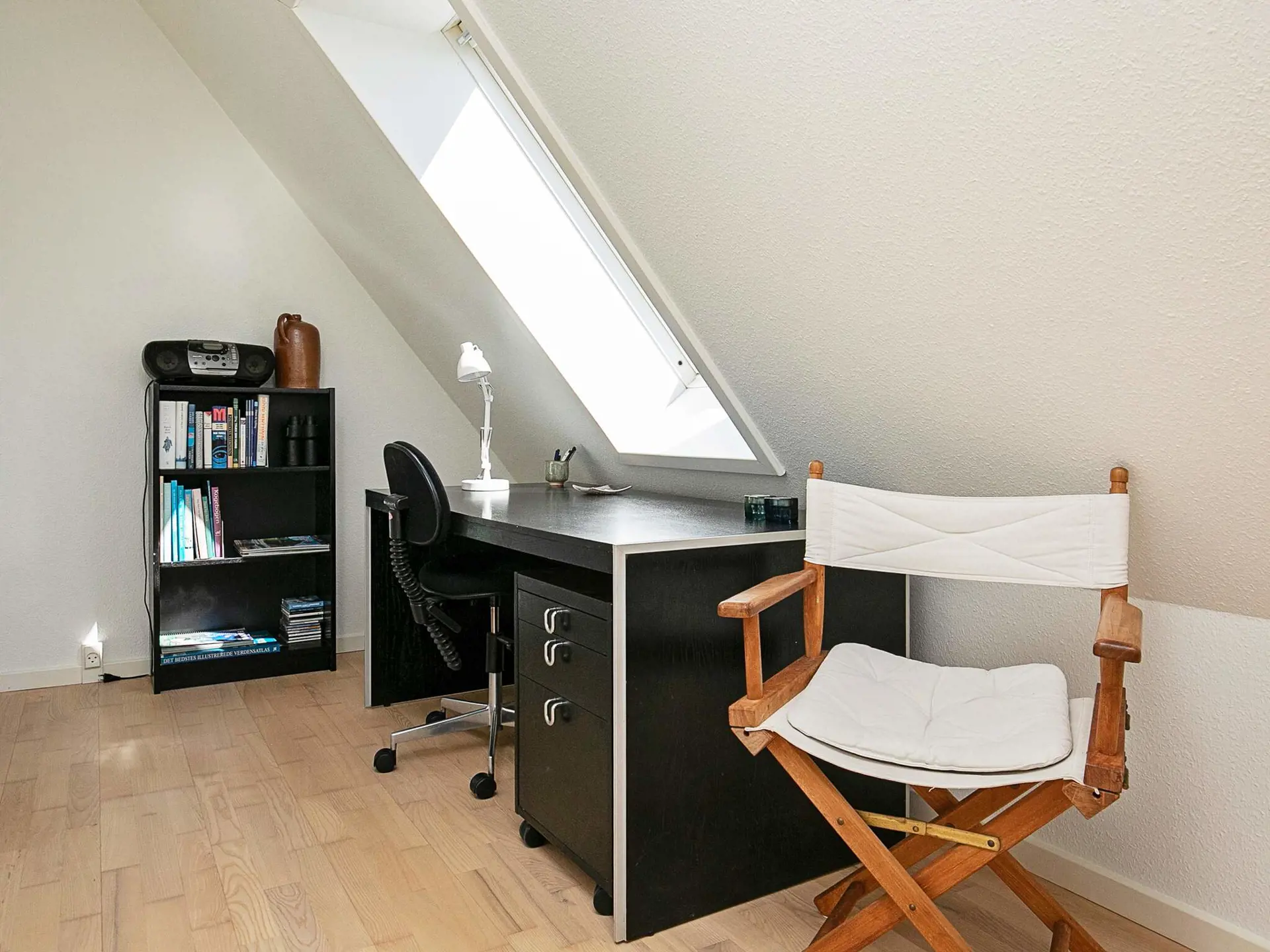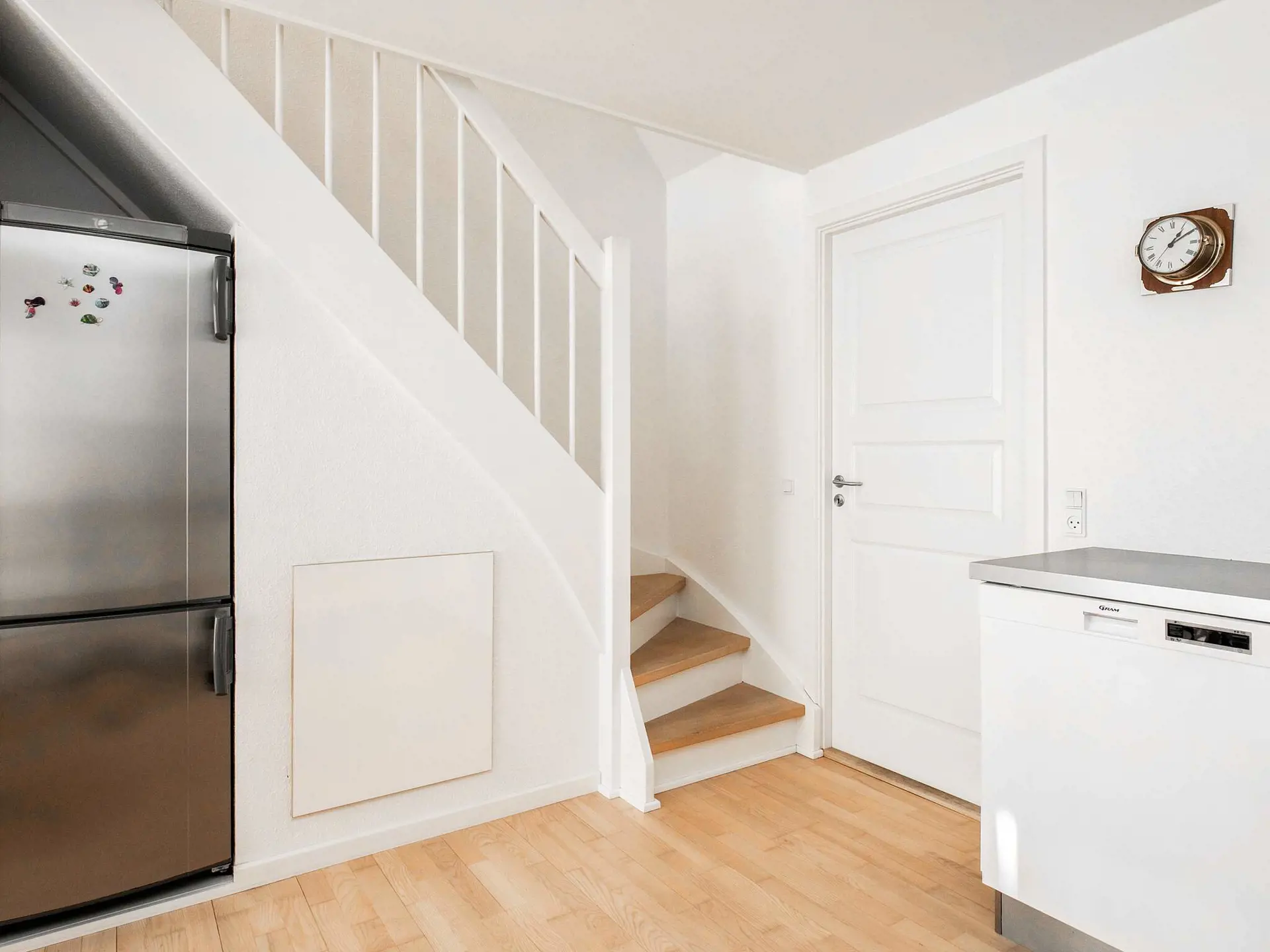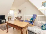 Im Parterre befinden sich ein geräumiger Küchen-/Essbereich sowie zwei Schlafzimmer, ein Badezimmer mit Fußbodenheizung und eine Eingangsdiele. In der oberen Etage findet man das Wohnzimmer und ein weiteres Schlafzimmer. Aufgrund der vielen großen Fenster im Haus ist das Wohnambiente besonders hell und einladend. Es gibt zudem viele schöne Details und moderne Annehmlichkeiten. Das Mobiliar wurde liebevoll ausgesucht und zusammengestellt, wobei eine gelungene Mischung aus teilweise Alt und Neu gelungen ist. Das Haus ist mit energiesparender Fernwärme ausgestattet.
