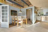 Früher beherbergte dieses Ferienhaus die Traktoren und Maschinen des Hofes. Der Familie war es jedoch wichtig, den ursprünglichen Charme zu bewahren, als sie beschlossen, ein Ferienhaus daraus zu gestalten. Deshalb arbeiteten sie mit einem talentierten Architekten und einem lokalen Schreiner zusammen, die ein besonderes Gespür für Details hatten. Das Ergebnis ist ein einzigartiges Ferienhaus mit 130 m², maßgeschneidert für unvergessliche Urlaubserlebnisse. Das Ferienhaus erstreckt sich über zwei Etagen und verfügt über ein großes Wohnzimmer sowie eine schöne Wohnküche mit offener Galerie und Dachfenster. Die Küche ist mit Geschirrspüler, Mikrowelle, Backofen, Herd, Kühlschrank und Gefrierschrank ausgestattet. Die Einrichtung besticht durch ihren Charme und die Liebe zum Detail. Die Farbgestaltung ist sorgfältig aufeinander abgestimmt. Im ersten Stock befindet sich ein großes, einladendes Schlafzimmer mit Doppelbett sowie ein kleineres Zimmer mit zwei Einzelbetten. Zusätzlich gibt es eine gemütliche und charmante Alkove.