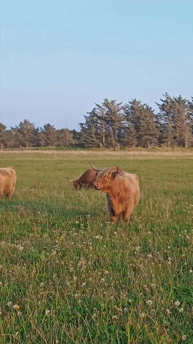 Das Ferienhaus bei Hollandgaard liegt mitten im Geschehen und doch ganz für sich – in perfekter Lage zwischen dem Leuchtturm Rubjerg Knude und der Stadt Lønstrup. Hier genießt man weite Horizonte und viel Platz für Kinder und Erwachsene. Das Grundstück erstreckt sich über ca. 19 Hektar (entspricht 26 Fußballfeldern) mit reichlich Wildtieren und natürlich den eigenen ökologischen Simmentaler Rindern des Hofes. Im Winter kann man die Tiere aus nächster Nähe erleben, wenn sie im Stall untergebracht sind.