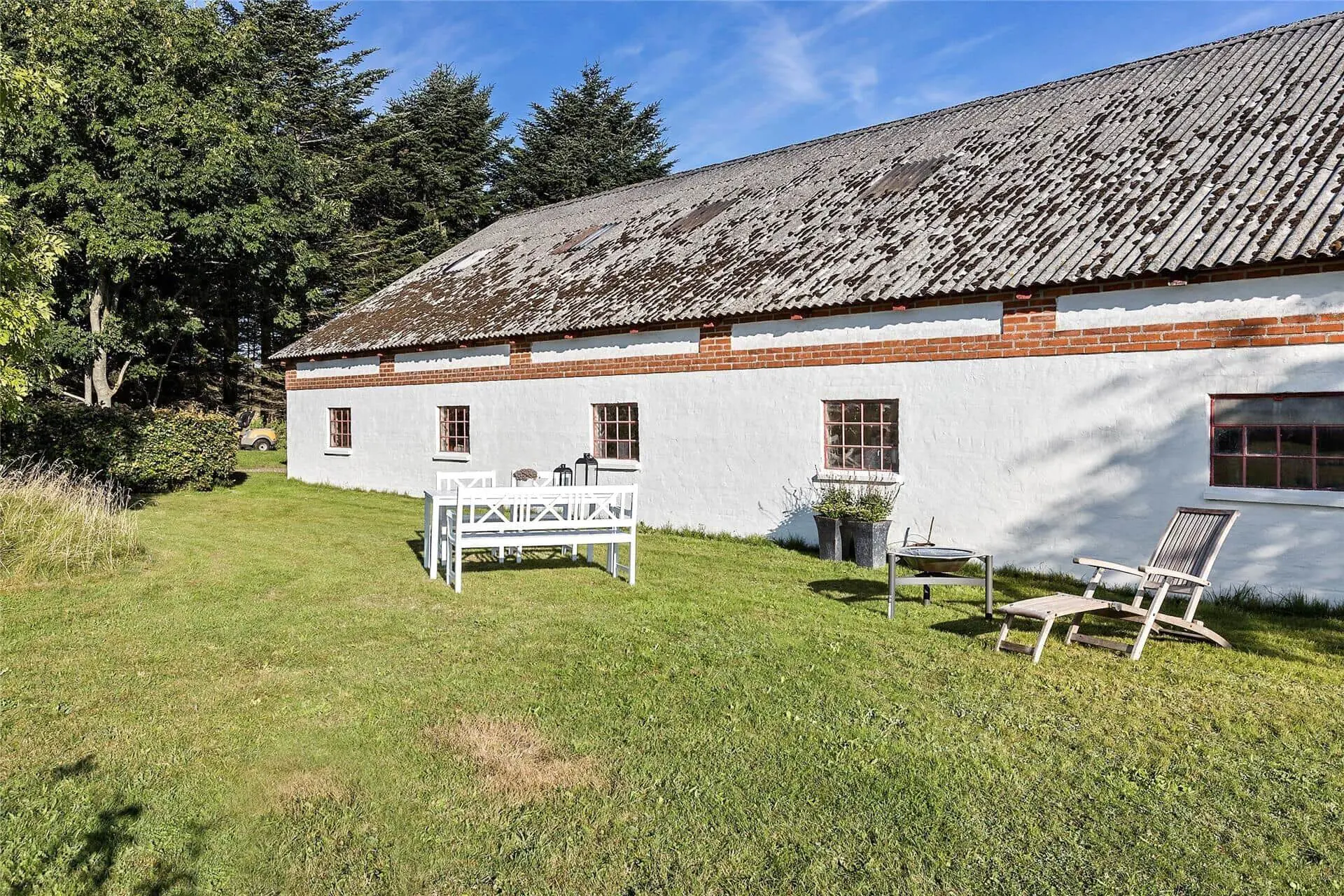 Zum Ferienhaus gehört ein eigener Garten. Von hier aus hat man einen direkten Blick auf den Leuchtturm Rubjerg Knude im Südwesten sowie auf die Vennebjerg Kirche und die Vennebjerg Mühle im Osten. Auf dem Hof gibt es eine kleine Herde Schottischer Hochlandrinder, große Pferde, einen Hund sowie zahlreiche Vögel, Rehe, Fasane und andere Wildtiere. Der Garten ist mit Gartenmöbeln, Liegestühlen, einem Grill und einem Spielturm für Kinder ausgestattet. Zudem gibt es einen großen Apfelbaum, und der Garten ist von einer dichten Buchenhecke umgeben.