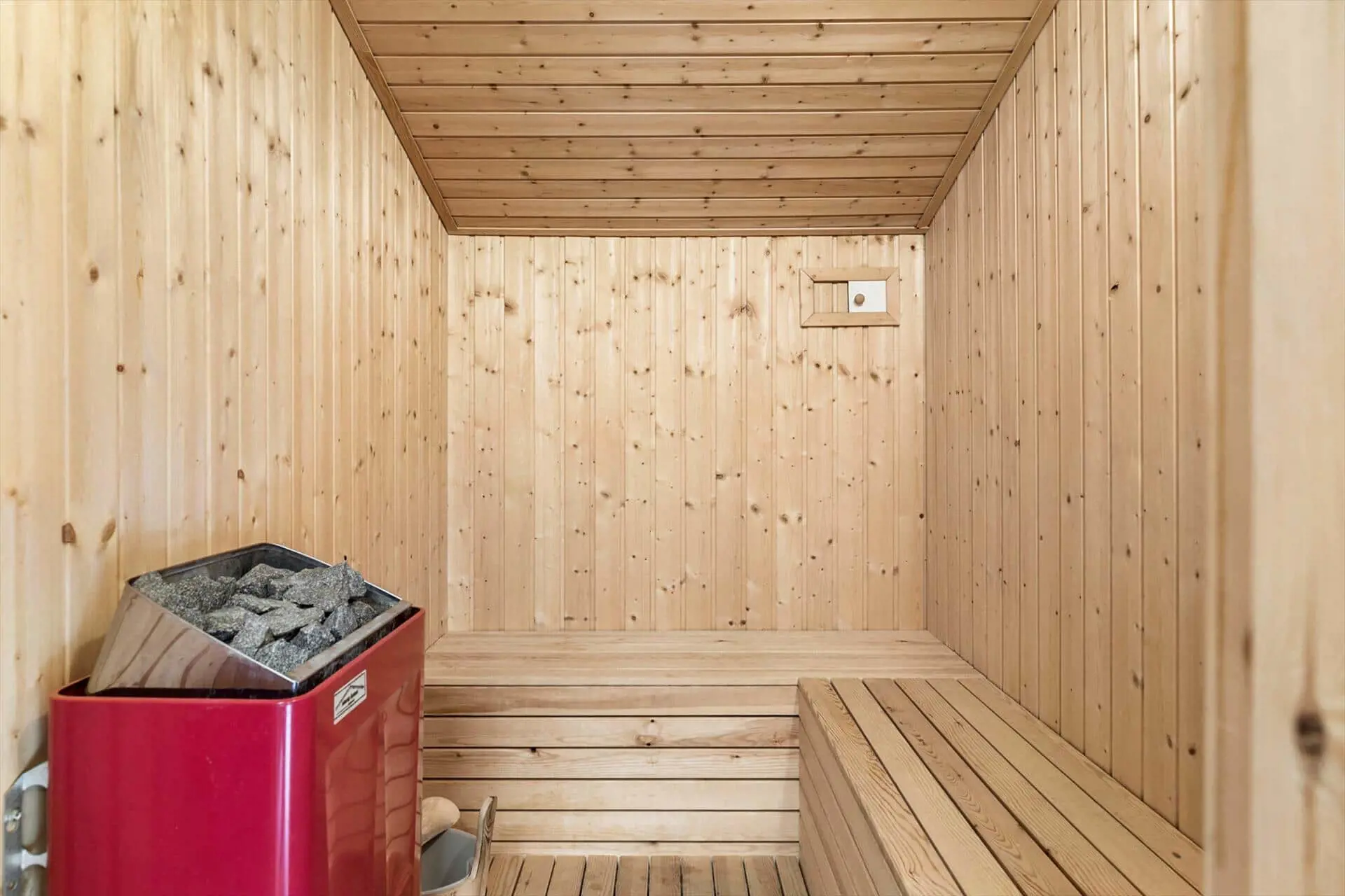 Der Eckwhirlpool und die Sauna, die beide im Badezimmer des Hauses platziert sind, verleihen Ihren Urlaubstagen einen Hauch von Wellnessflair. Erholsam und entspannt geht es auch im Wohnraum zu, in dem ein Kaminofen und eine Polstersitzgruppe zu gemütlichen Stunden mit einem guten Buch oder einen Film auf dem Flachbild-TV einladen. Der Wohnraum liegt ein wenig tiefer als der Küchen- und Essbereich und ist über ein paar Stufen erreichbar. Die Küche bietet Ihnen alles, was Sie für die Zubereitung Ihrer Mahlzeiten benötigen - inklusive eines Geschirrspülers. Neben dem bereits erwähnten Badezimmer steht Ihnen ein Gäste-WC zur Verfügung. Die Schlafplätze verteilen sich auf zwei Zimmer mit je einem Doppelbett und auf einen Schlafraum mit einem Schlafsofa.