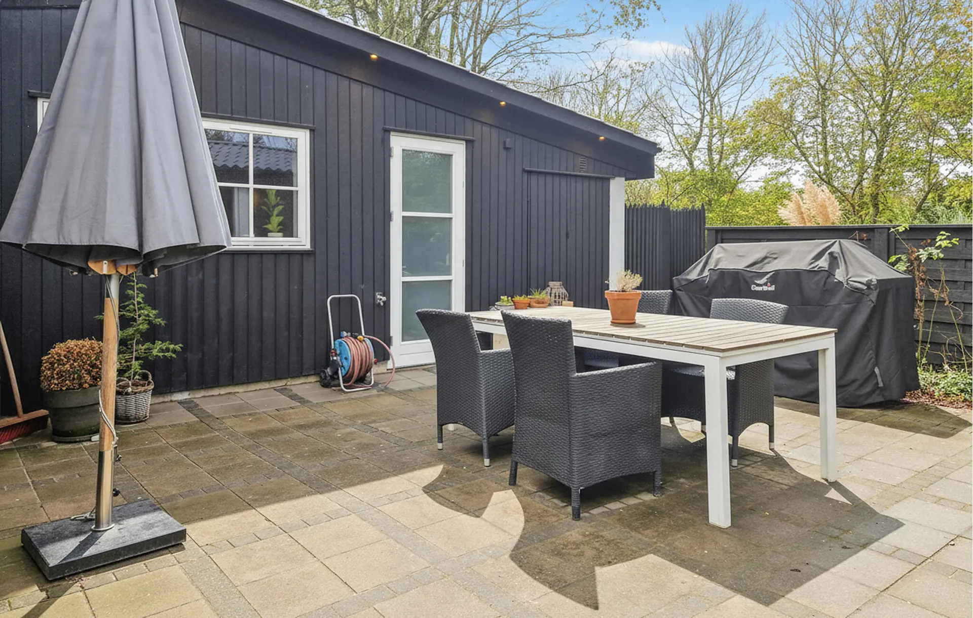 Treten Sie gleich morgens auf die Terrasse und genießen Sie eine Tasse Kaffee, während Sie den Stimmen der Natur lauschen. Frühstücken Sie im Grünen, vertiefen Sie sich in Ihre Urlaubslektüre oder spielen Sie das beliebte Wikingerspiel oder Krocket im Garten. Entzünden Sie abends den Grill und lassen Sie den Tag gemütlich bei einem Glas Wein ausklingen.