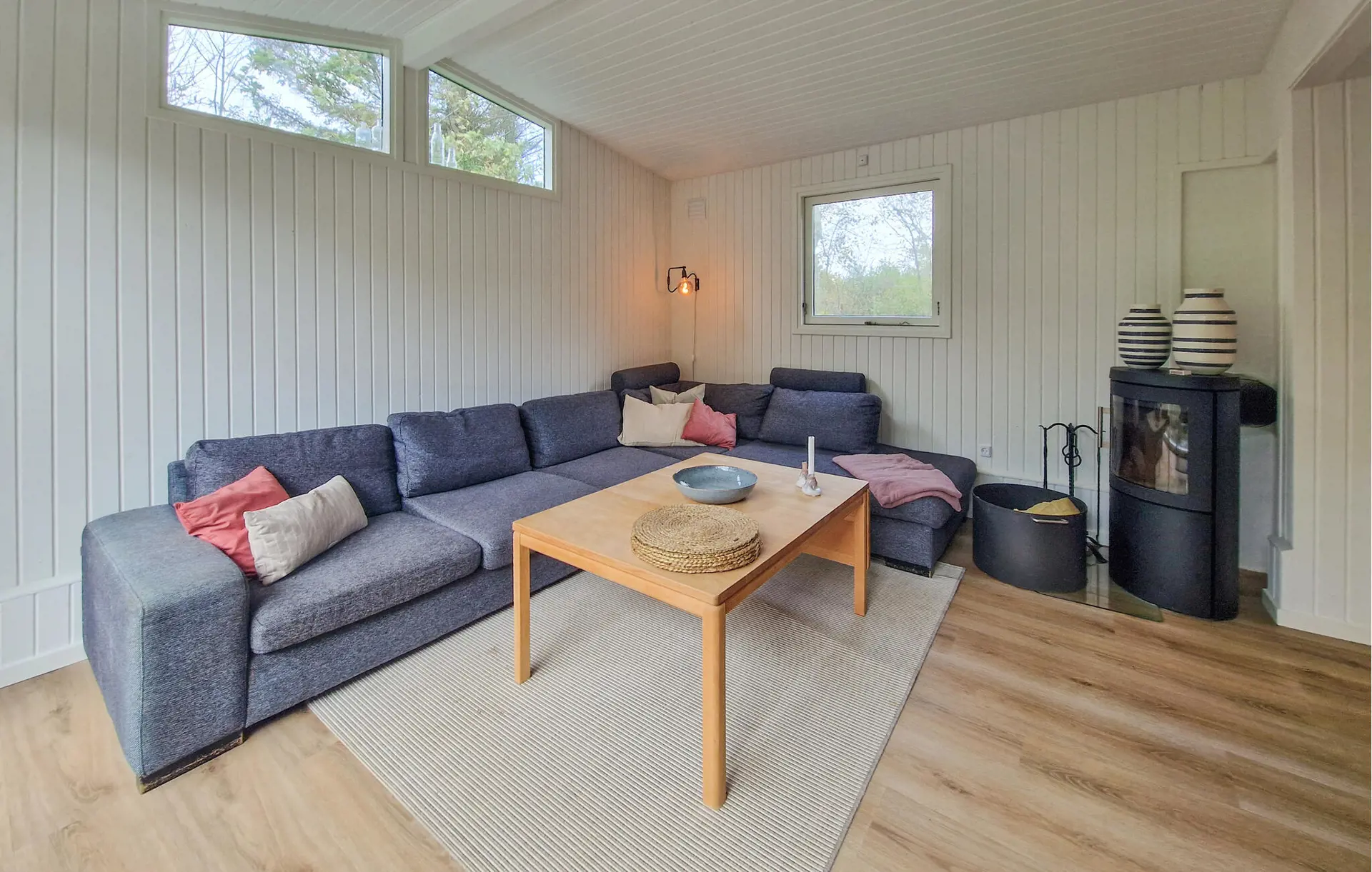 Dieses gemütliche Haus ist wie geschaffen für eine schöne Auszeit vom Alltag. Durch eine große Fensterfront zur Terrasse fällt viel warmes Tageslicht auf die gemütliche Einrichtung mit Sofalandschaft, Kaminofen und liebevoll ausgesuchten Details. Lehen Sie sich hier entspannt bei einer duftenden Tasse Kaffee zurück, verbringen Sie einen gemütlichen Abend vor dem Fernseher oder entspannen Sie sich bei einem ausgiebigen Bad im Whirlpool.