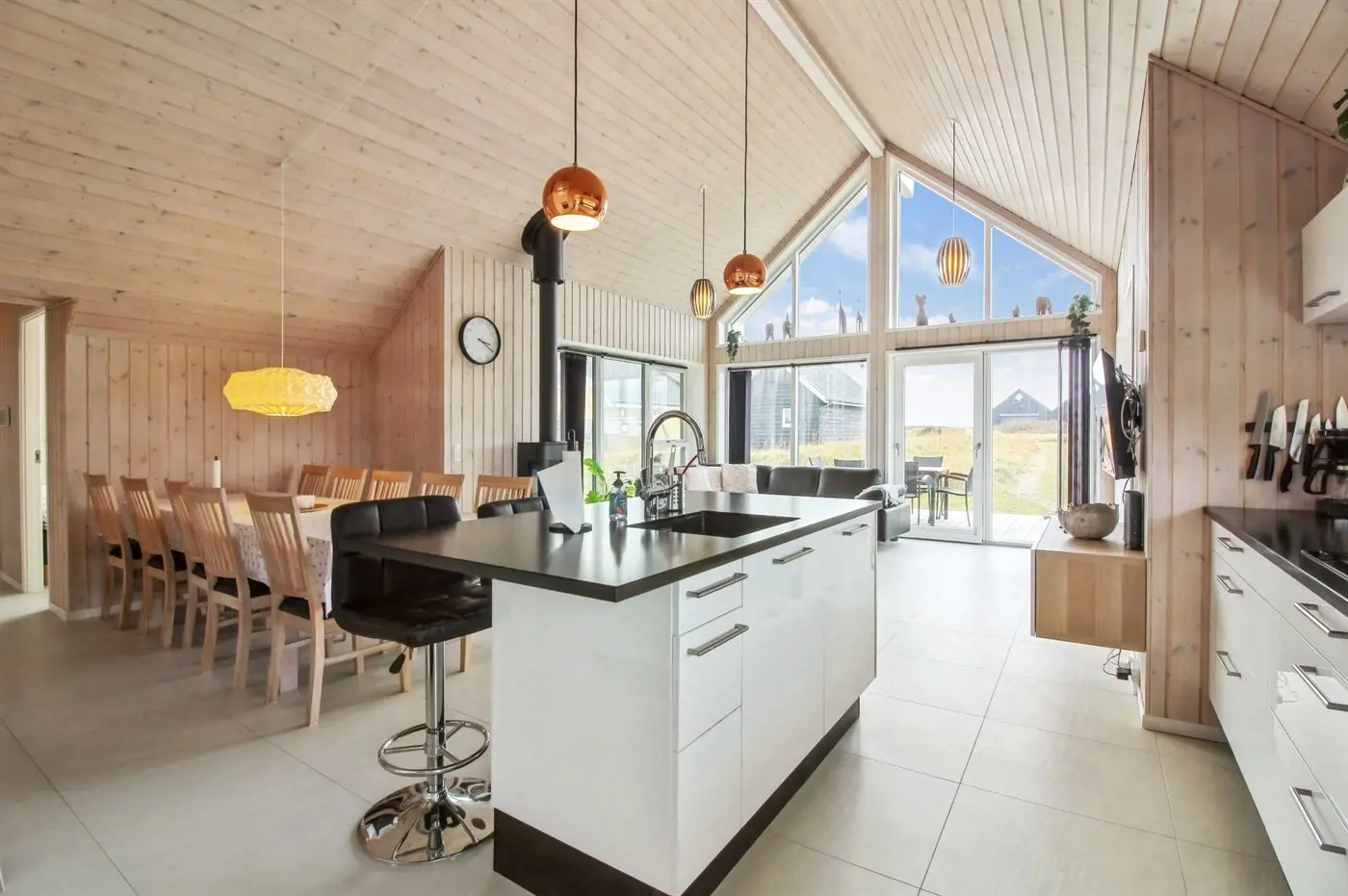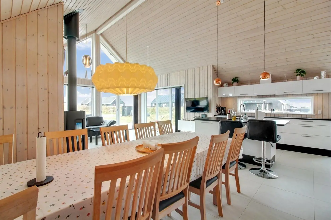 Das Ferienhaus eignet sich für 10 Personen sowie 1 Kleinkind bis zu 3 Jahren. 2 der Schlafplätze eignen sich jedoch nur für größere Kinder (4-11 Jahre). Die Ferienunterkunft hat eine Wohnfläche von 119 m² und wurde 2015 gebaut. Es ist erlaubt 1 Haustier mitzubringen. Es gibt Erdwärme. Fußbodenheizung in allen Räumen. Die Ferienunterkunft ist mit Waschmaschine ausgestattet. Wäschetrockner. Tiefkühlmöglichkeit mit 180 Liter Nutzinhalt. Es gibt außerdem einen Kaminofen. Für die jüngsten Feriengäste ist 1 Kinderhochstuhl vorhanden.