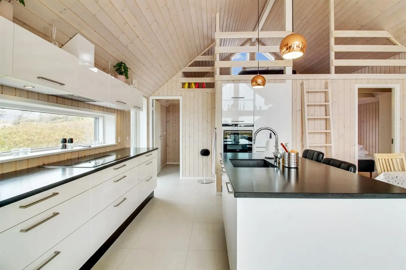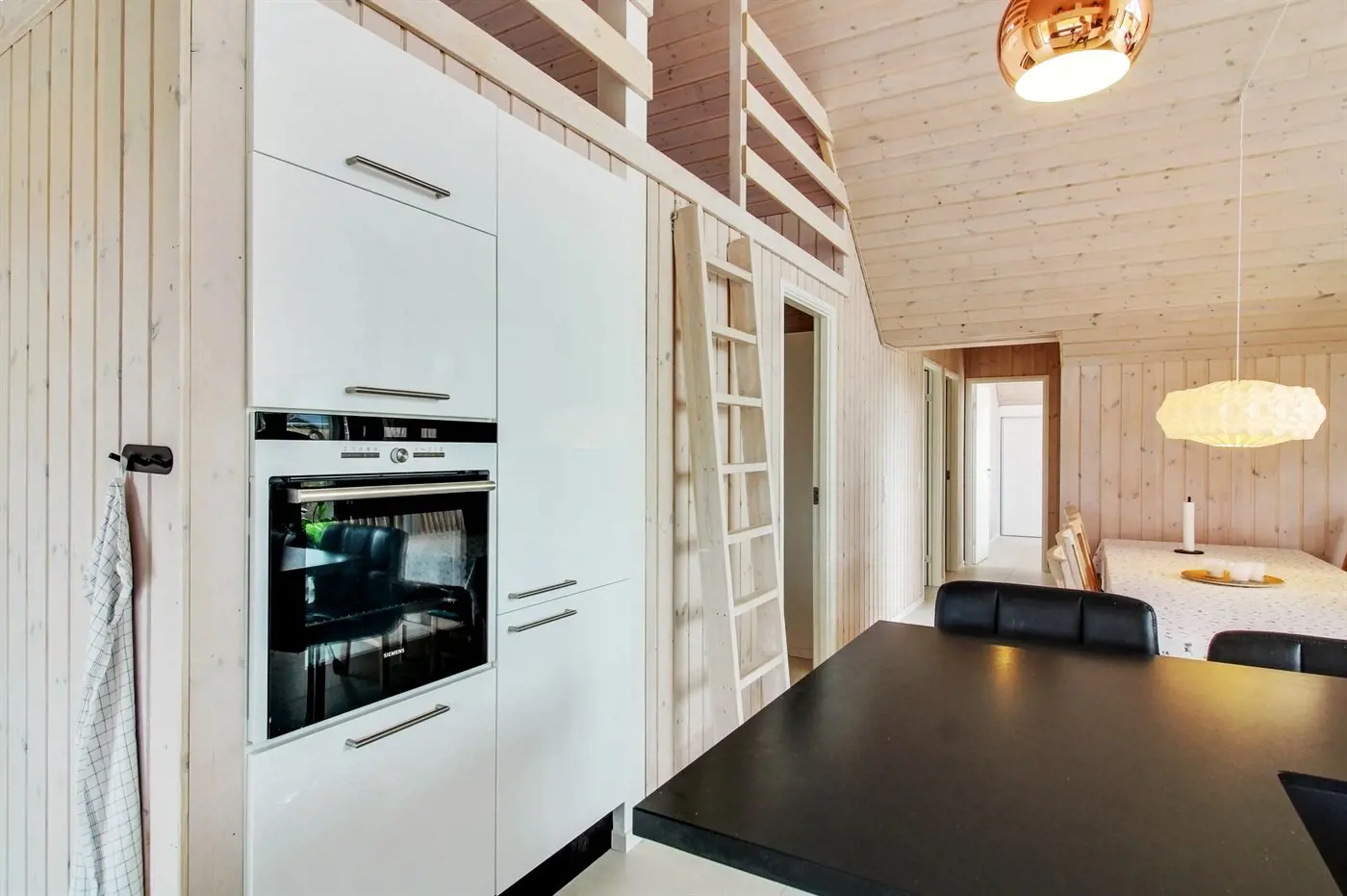 Die Küche ist mit 2 Kühlschränke ausgestattet . Außerdem gibt es 4 Induktions-Kochzonen, Umluftofen, Mikrowelle sowie Geschirrspüler.