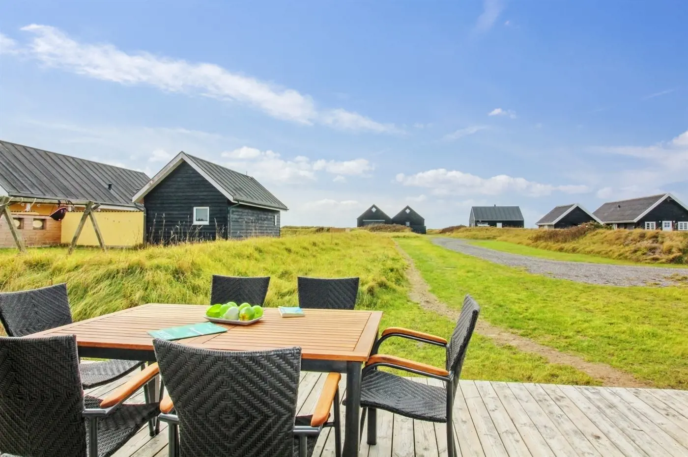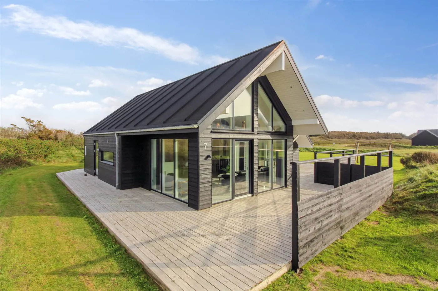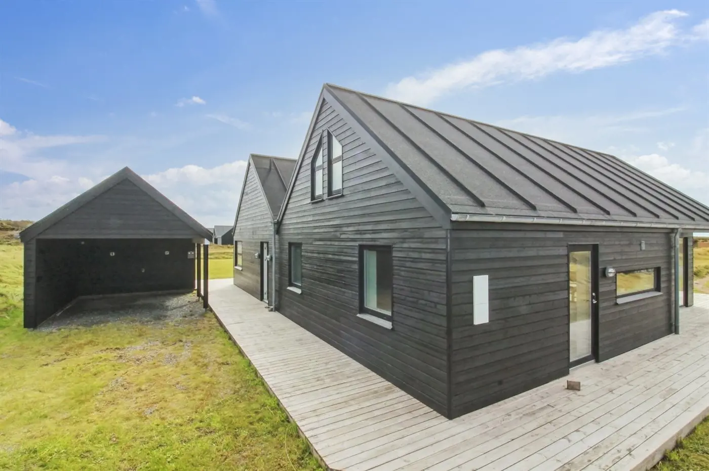 Die Ferienunterkunft liegt auf einem 1266 m² großen Naturgrundstück. Die Entfernung zum Meer beträgt 100 m. Die nächste Einkaufsmöglichkeit liegt 750 m entfernt. In einem Abstand von 4000 m gibt es einen Golfplatz. Es steht ein offenes Terrassenareal zur Verfügung. Geräteraum. Schaukel. Es steht ein Grill zur Verfügung. Es steht ein Carport zur Verfügung. Es ist ein Ladestecker für Elektroautos installiert. Parkplatz auf dem Grundstück.