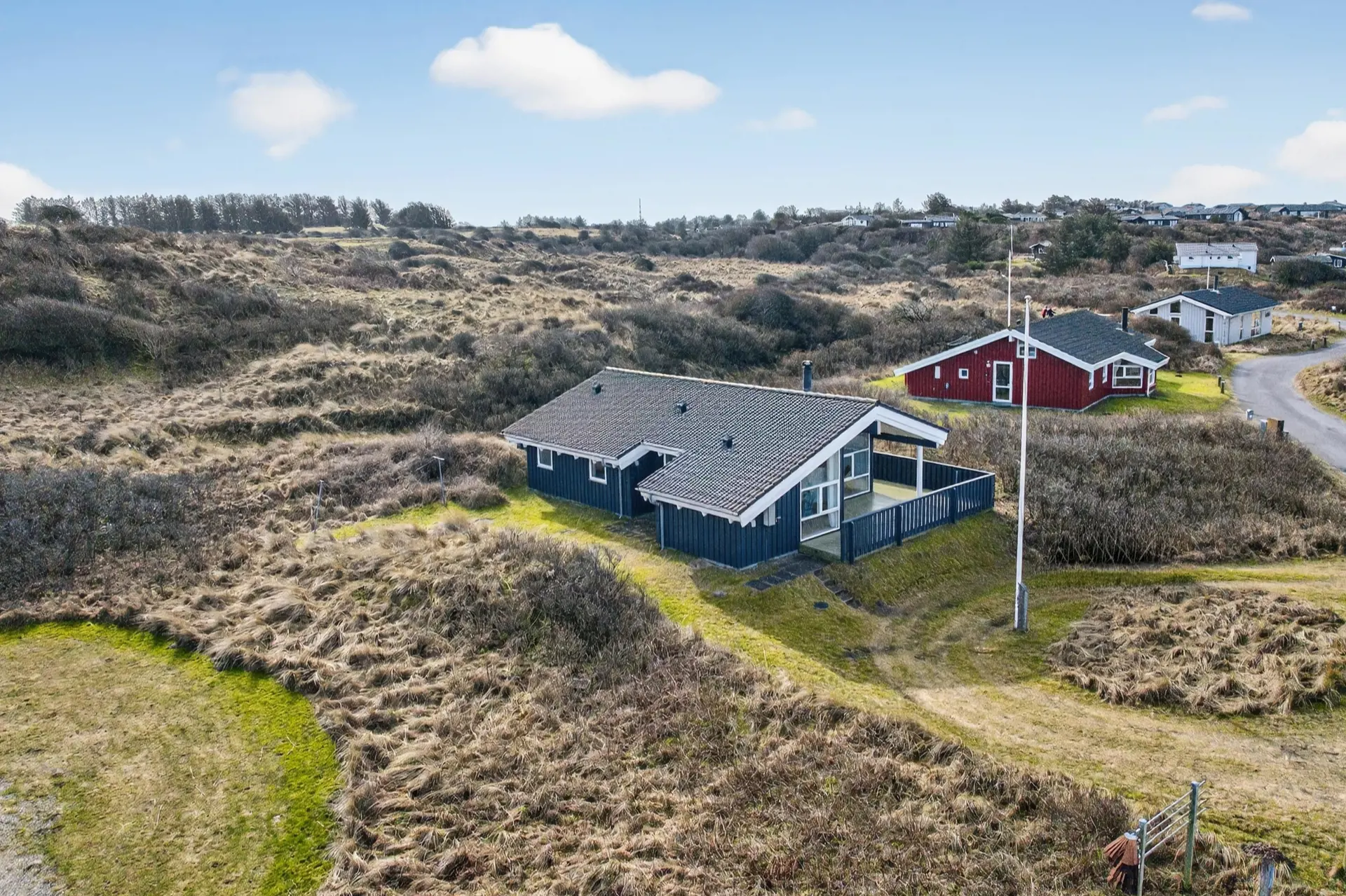 Dieses schöne Ferienhaus in Lønstrup liegt im beliebten Gebiet Harerenden – nur 300 Meter vom Lønstrup Strand und der rauschenden Nordsee entfernt. Hier wohnen Sie mitten in der beeindruckenden Natur der nordjütländischen Westküste, wo der Blick über die Dünen und das hügelige Ferienhausgebiet den perfekten Rahmen für einen entspannten Familienurlaub bildet.