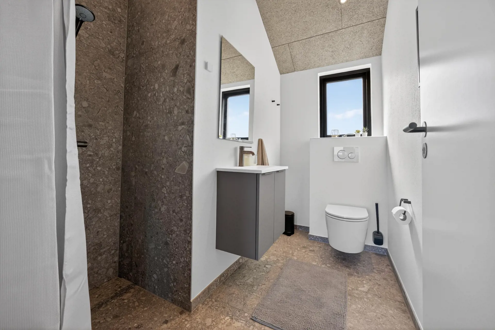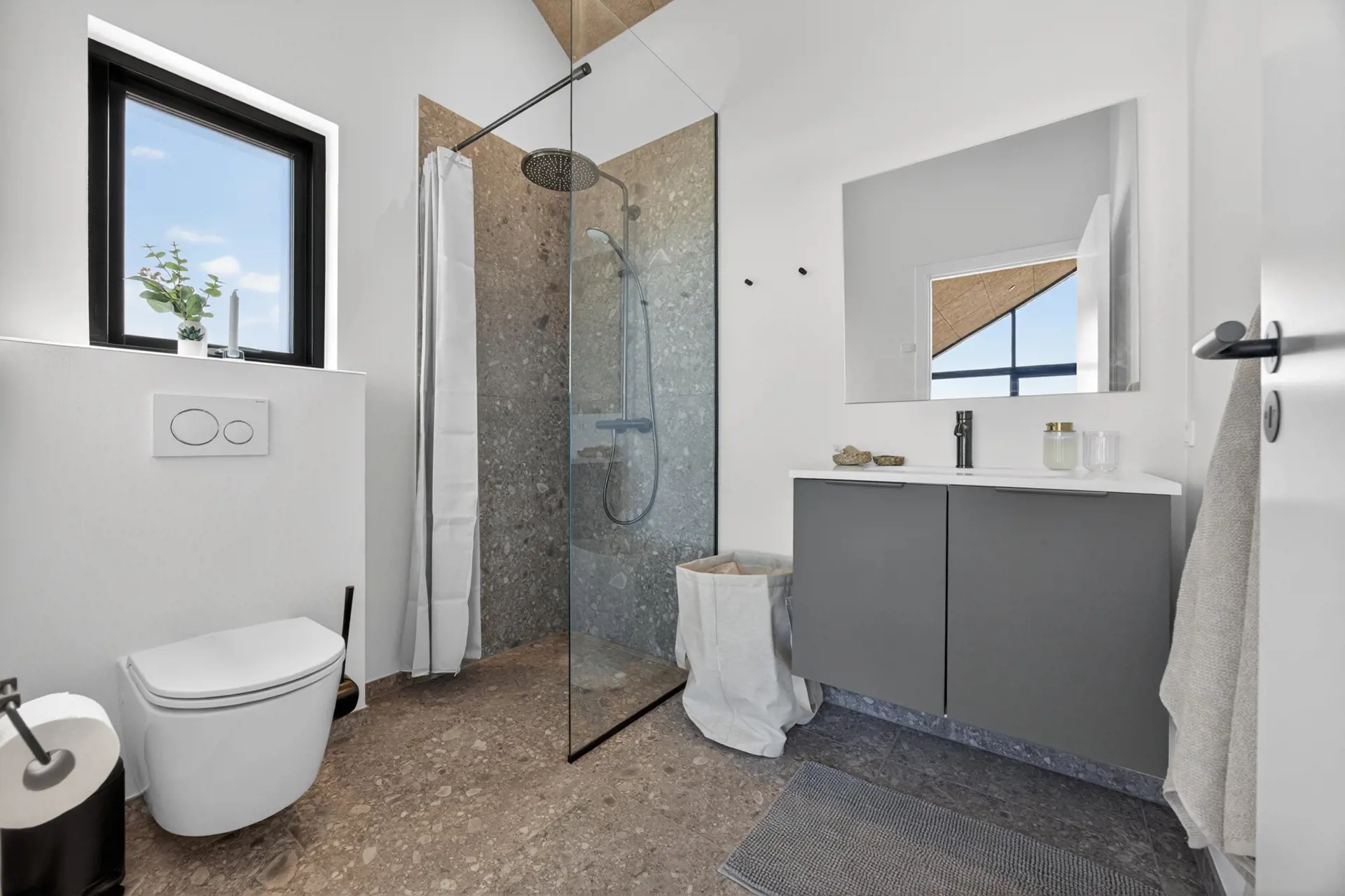Die sorgfältig ausgewählten Materialien bilden einen schönen Kontrast zu den hellen Wänden und verleihen dem Haus eine moderne und zugleich warme Ausstrahlung. Das Ferienhaus bietet Platz für bis zu 6 Personen, verteilt auf drei wunderschöne Schlafzimmer, sowie zwei elegante Badezimmer mit Duschnische, die höchsten Komfort für alle Gäste gewährleisten.