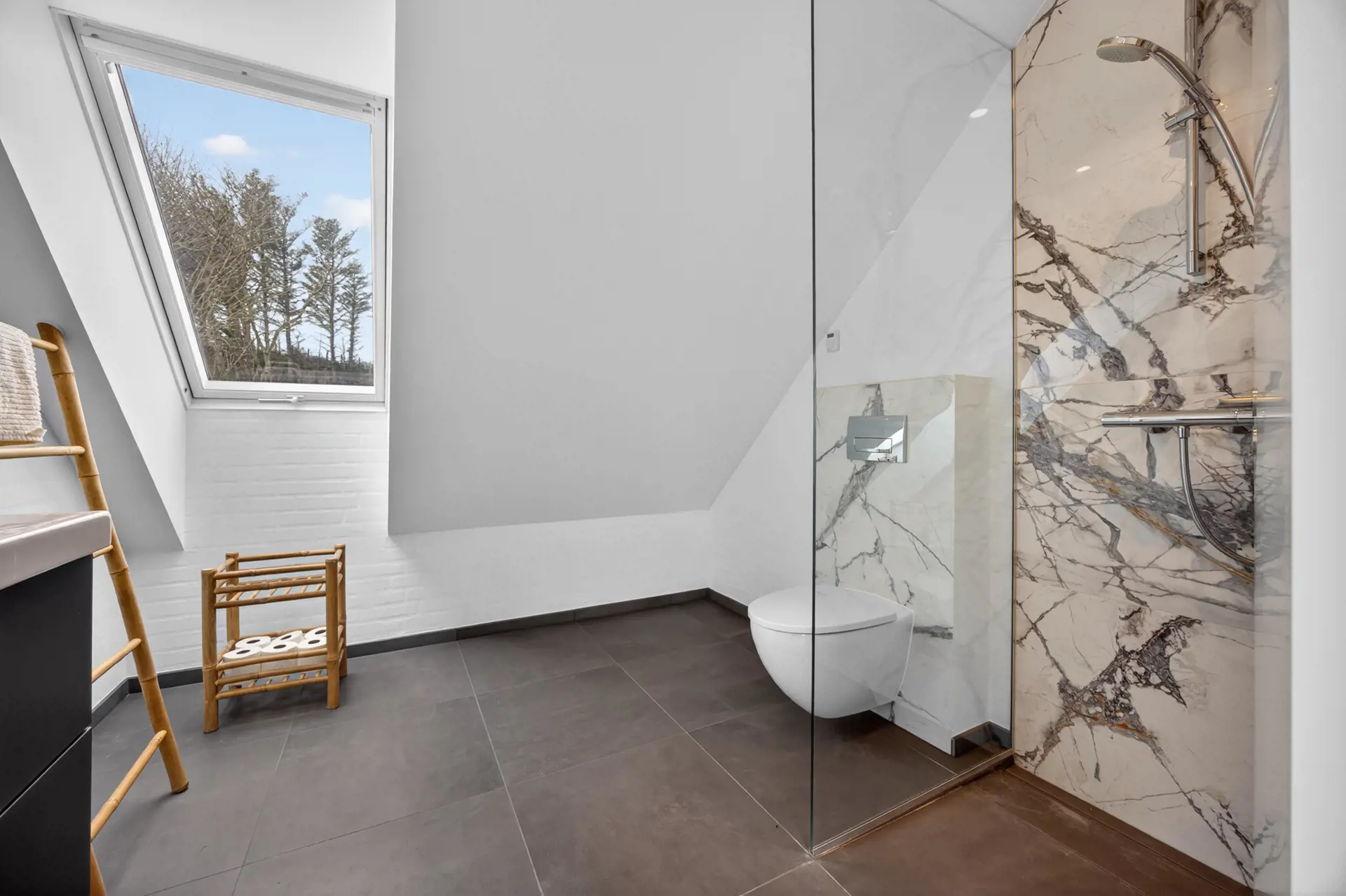 Das Badezimmer ist privat und verfügt über eine Dusche.