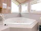 Der offene Wohnbereich kombiniert eine gut ausgestattete Küche mit einem hellen, luftigen Wohnzimmer mit moderner Einrichtung und einem gemütlichen Holzofen – ideal für Familienfeiern oder ruhige Abende. Eine klimafreundliche Wärmepumpe sorgt für angenehme Temperaturen im Haus, während zwei Badezimmer, eines davon mit Whirlpool und Sauna, für ein ultimatives Wellness-Erlebnis sorgen. Vier gut ausgestattete Schlafzimmer bieten viel Platz und Stauraum. Unternehmungslustige Gäste werden den Loftbereich zu schätzen wissen, der über das obere Bett in einem der Zimmer zugänglich ist.