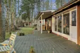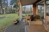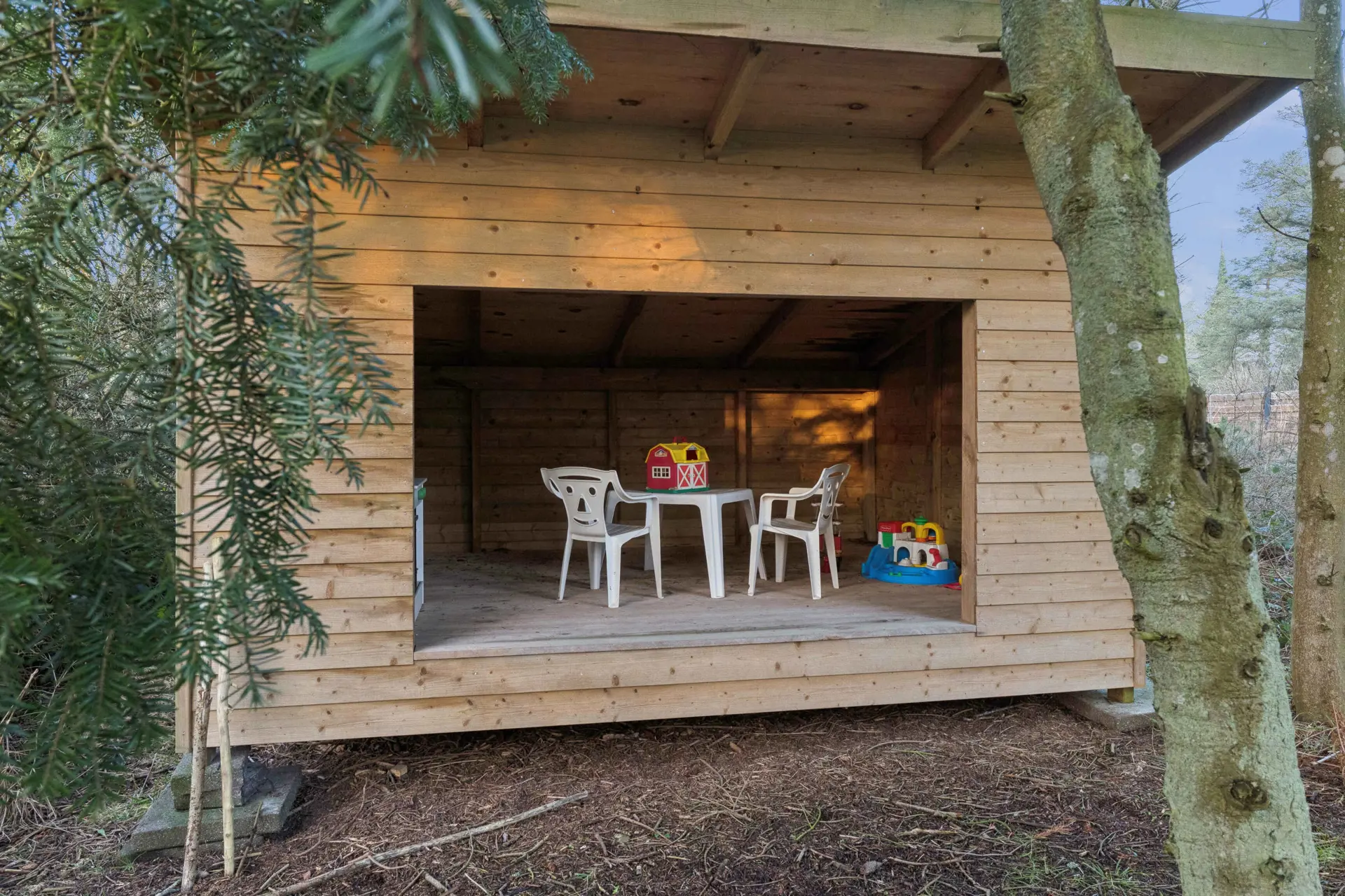 Das Haus liegt auf einem 2.250 m² großen Grundstück mit Rasenflächen und Waldstück. Auf dem Grundstück gibt es außerdem einen Shelter zur freien Nutzung. Es liegt ruhig und uneinsehbar an einer Schotterstraße.