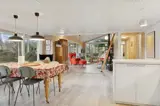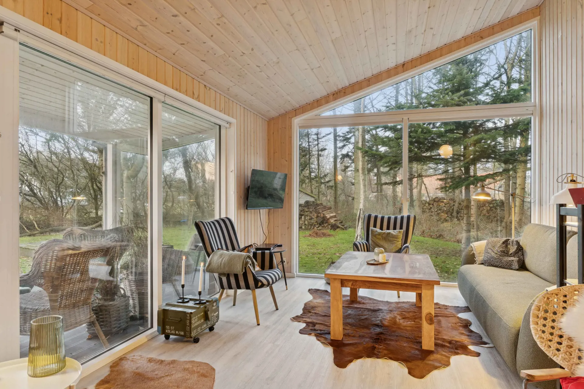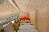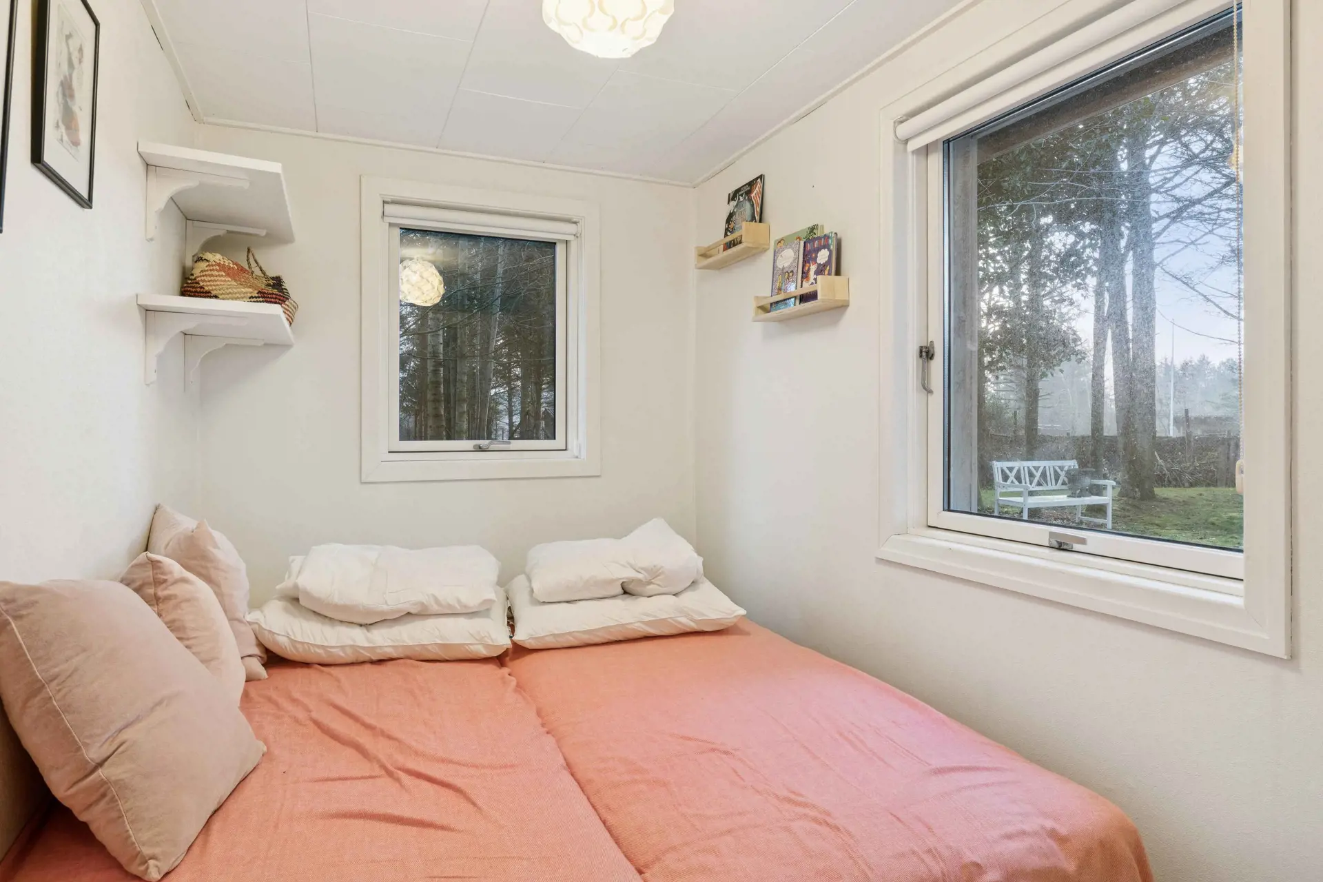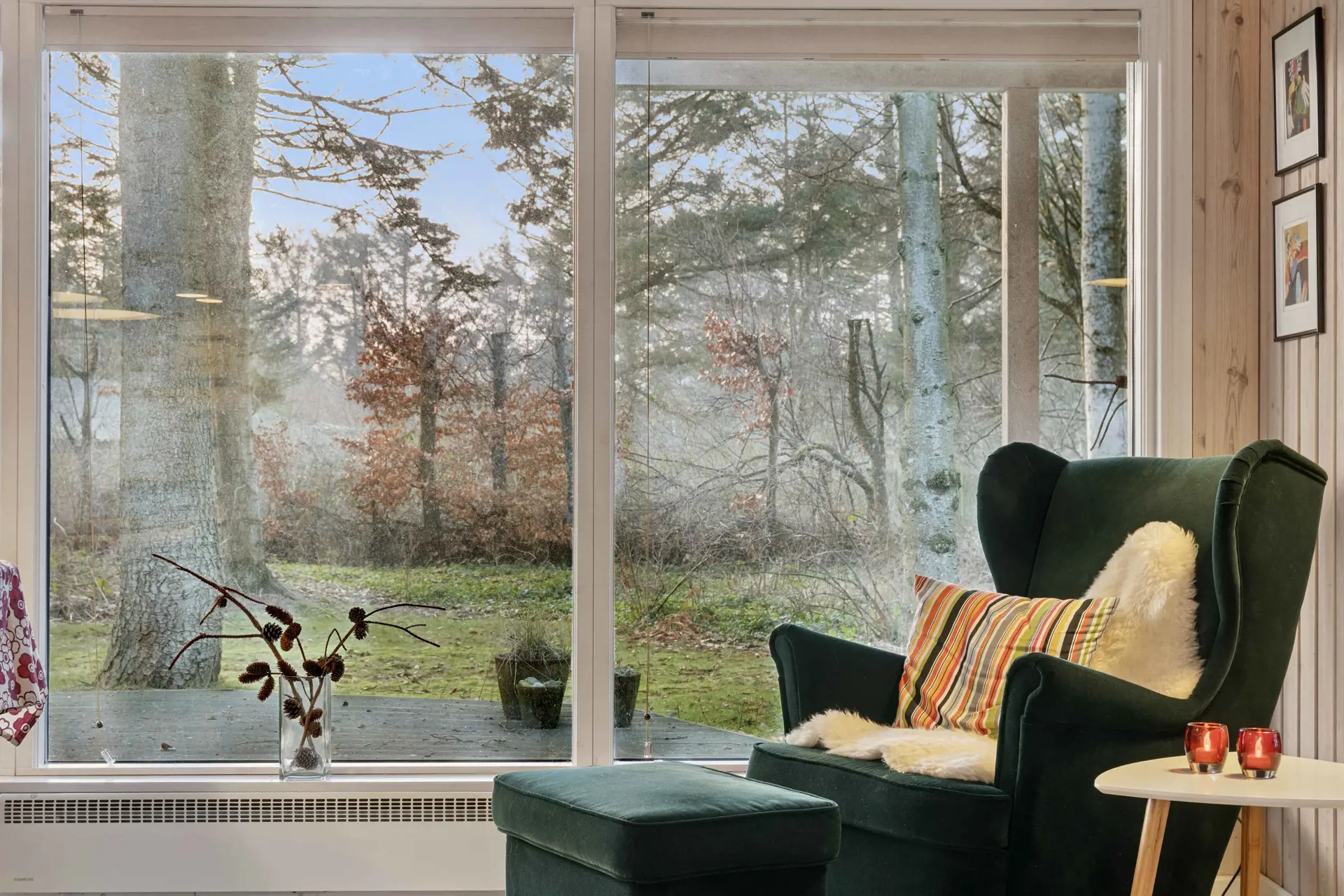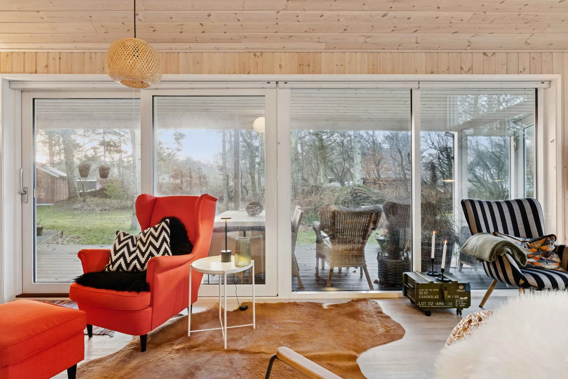 Das Haus ist 116 m² groß und besteht aus einem ursprünglichen, renovierten Teil von 1969 und einem Neubau von 2014. Man betritt das Haus durch den Hauswirtschaftsraum, wo sich auf einer Seite ein großes Schlafzimmer mit Doppelbett (180x200) und ein Badezimmer befinden, und auf der anderen Seite die Küche mit Essbereich. Die Küche stammt aus dem Jahr 2023 und bietet Platz für 6 Personen. Vom Essbereich gelangt man in das geräumige und gemütliche Wohnzimmer mit Holzofen und Sitzecke. Bücher und Spiele stehen zur Verfügung, ebenso eine gemütliche Schlafempore. Vom Wohnzimmer und Essbereich führt der Zugang auf eine teilweise überdachte Terrasse.