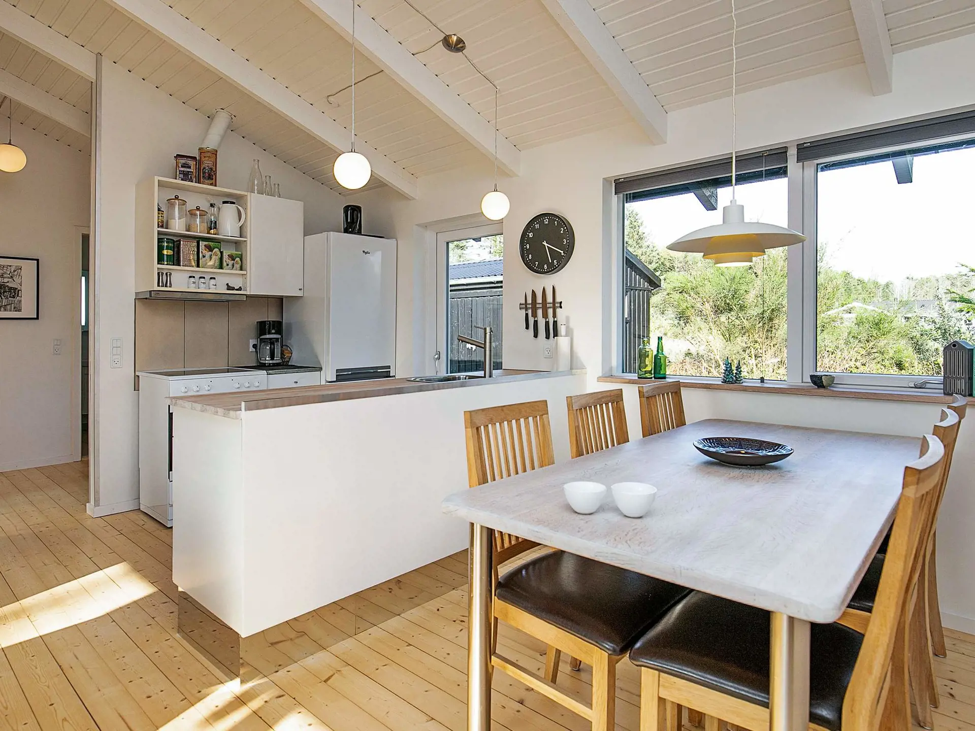 Zu dem Haus gehört ein kombinierter Küchen-/Aufenthaltsbereich, drei Schlafzimmer und ein Bad mit Dusche und Fußbodenheizung. Das Wohnzimmer ist hell und modern eingerichtet und lädt zu gemütlichen Stunden ein. Eine Luft-Luft-Wärmepumpe und ein Holzofen mit gratis Holz sorgt für eine kostengünstige Erwärmung.