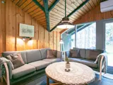 Im Außenbereich des Ferienhauses stehen mehrere Terrassenflächen zur Auswahl, je nach Tageszeit mit sonnigen oder schattigen Sitzplätzen. Außerdem gibt es eine Rasenfläche für Spiel, Sport und Spaß an der frischen Luft. Für die Jüngsten steht eine Schaukel bereit. Das große Grundstück ist von Bäumen umgeben, die Sicht- und Windschutz bieten. Gartenmöbel und Grill stehen für Sommertage und Mahlzeiten im Freien zur Verfügung.