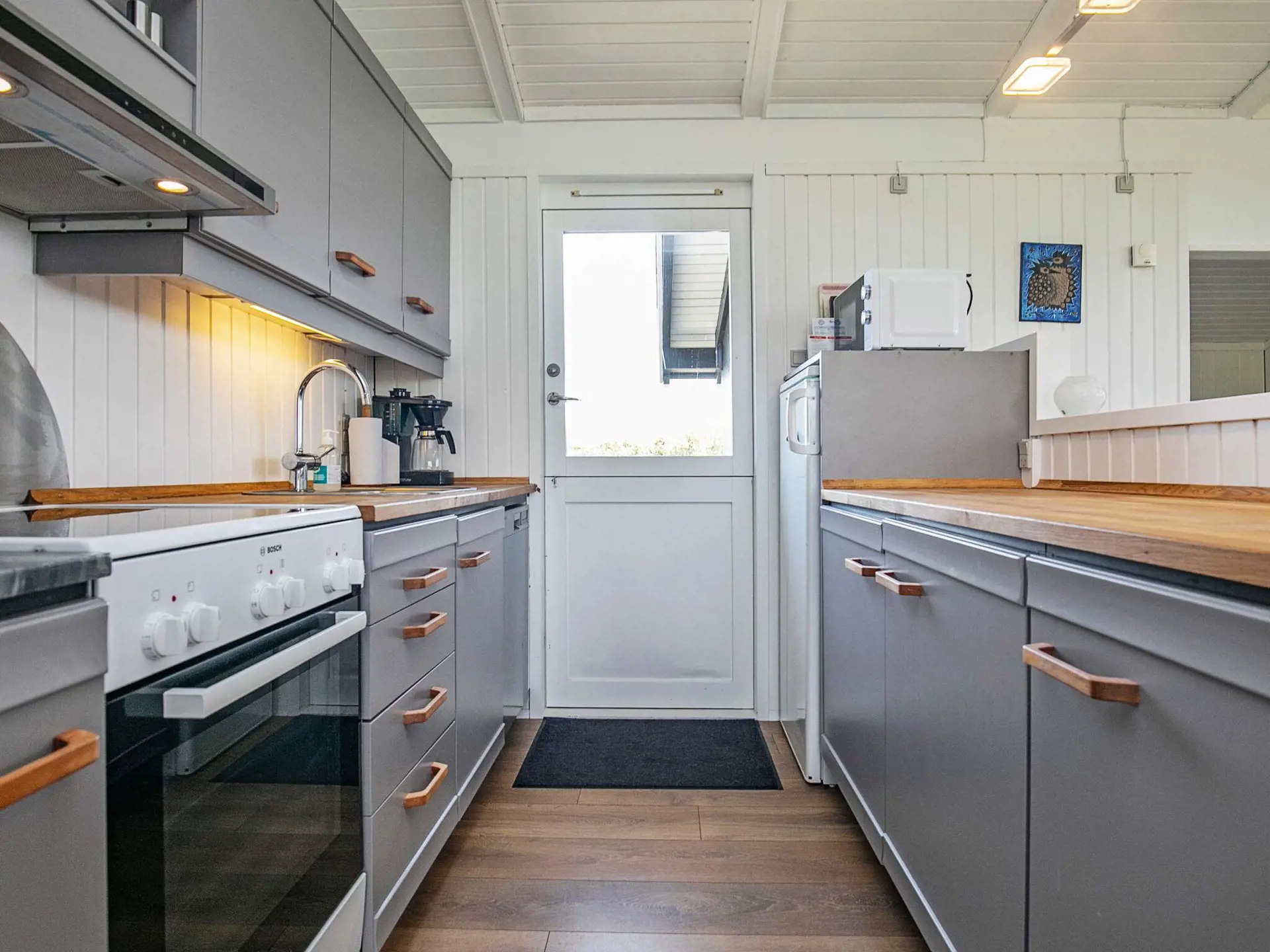 Das Ferienhaus liegt nur 50 m vom schönen Nordseestrand bei Nr. Lyngby entfernt. Dieser ist nicht ganz so breit wie viele andere Strände der Westküste, dafür bietet er andere Sehenswürdigkeiten wie einen alten Bunker aus dem Zweiten Weltkrieg. Die Steilküste lockt oft Gleitschirmflieger ins Gebiet, ein faszinierender Anblick! Auch der Sonnenuntergang ist sehenswert. Machen Sie einen Spaziergang durch die Dünen bei Rubjerg Knude oder ein Ausflug zu den Tieren im Family Farm Fun Park, ein Spaß für Groß und Klein.