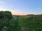 Das Ferienhaus liegt recht geschützt auf einem großen, hügeligen Naturgrundstück mit etwas Rasen und schützender Hecke sowie teilweise überdachten Terrassenflächen. Dort findet man windgeschützte Sitzecken.