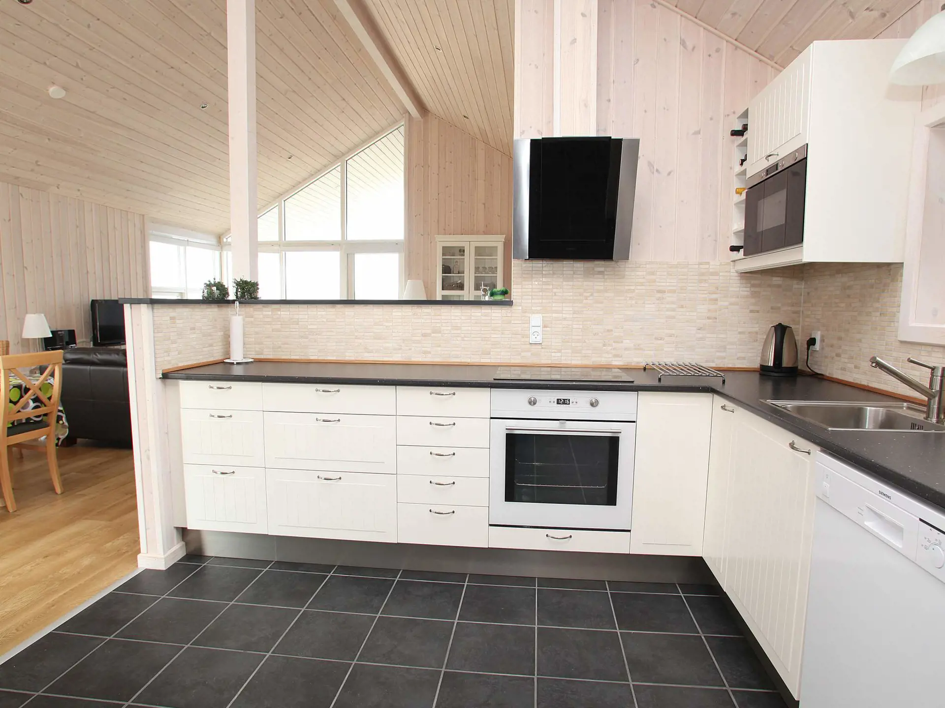 Dieses Ferienhaus liegt in dem alten Fischerdorf Nr. Lyngby, genau zwischen Løkken und Lønstrup. Von Wohnzimmer und Terrasse kann man die Dünenlandschaft bis zum Leuchtturm Rubjerg Knude Fyr überblicken und ein bisschen vom Meer sehen. Das Haus ist geräumig und u.a. mit einem offenen Wohn-Küchenbereich eingerichtet.