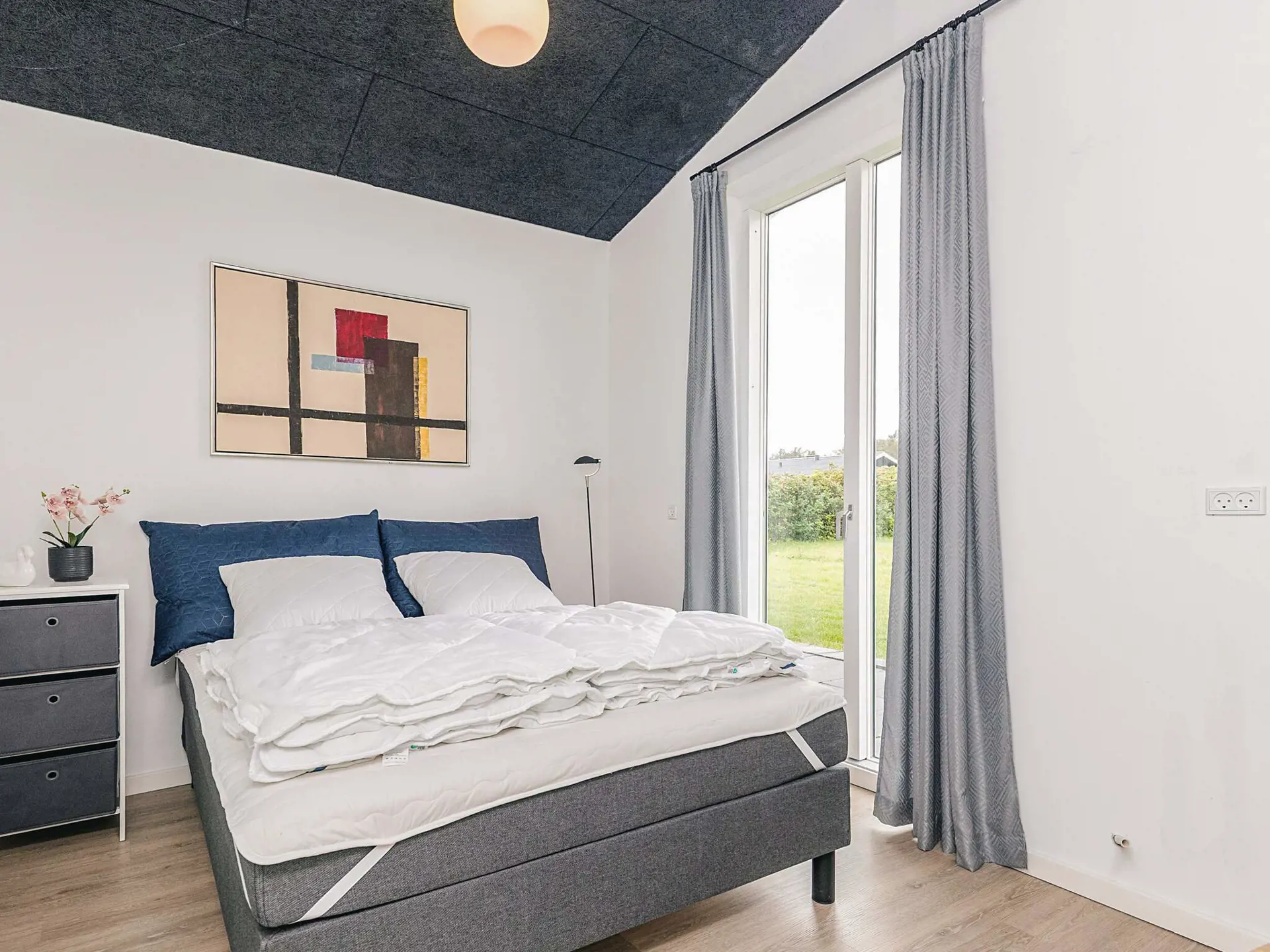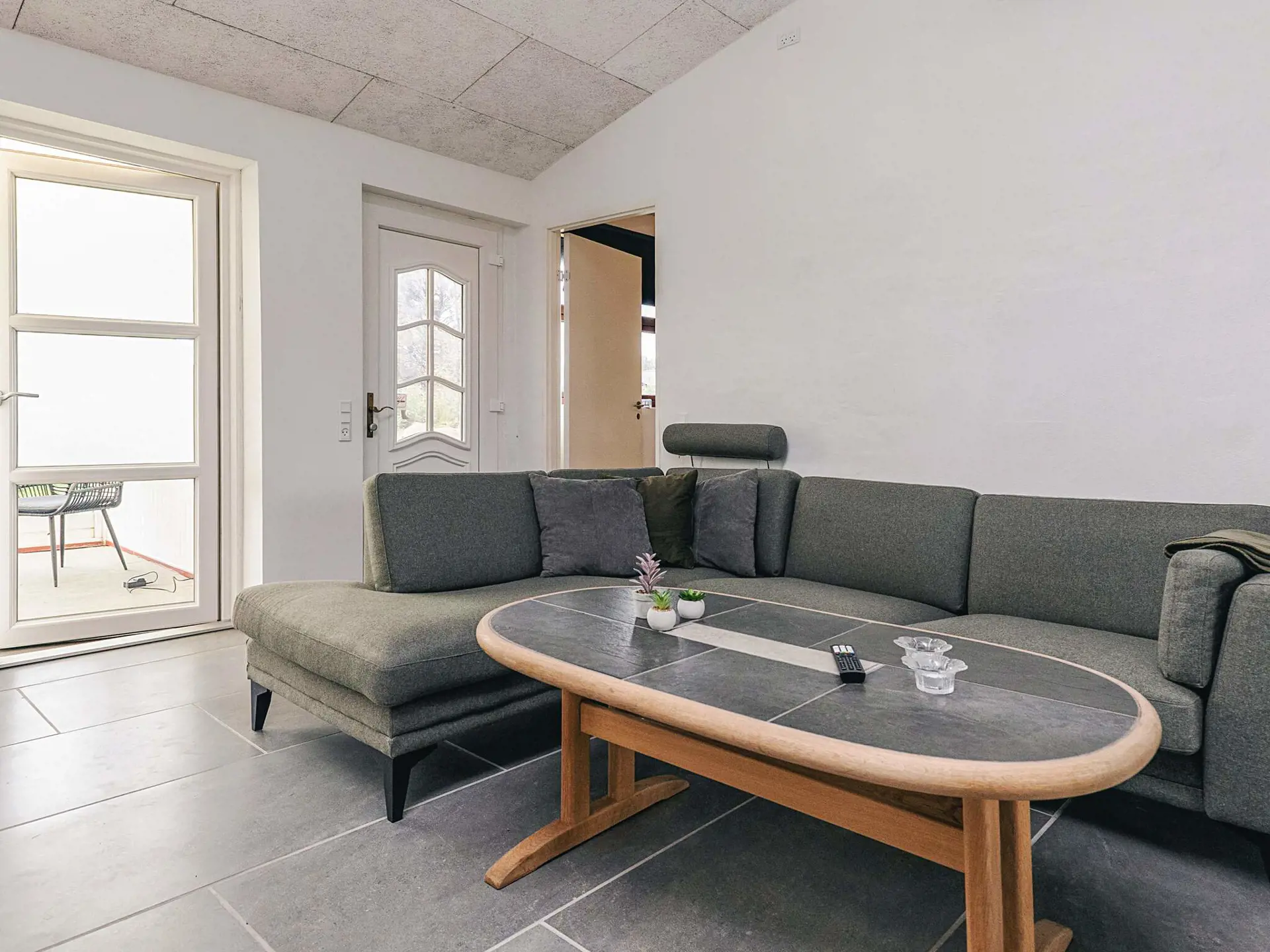 Die Einrichtung umfasst ein helles und offenes Wohnzimmer mit Essbereich und Sofaecke, wo man sich zu gemütlichen Stunden zusammenfinden kann. Der schöne wandhängende Holzofen sorgt für Gemütlichkeit und kann im gesamten Wohnbereich genossen werden. Die Küche ist praktisch eingerichtet und verfügt über alle notwendigen Geräte für den Urlaub, darunter als zusätzlicher Luxus eine Spülmaschine, eine Heißluftfritteuse und eine Mikrowelle. Das Ferienhaus verfügt über insgesamt 3 Schlafzimmer, darunter 1 Zimmer mit Doppelbett, 1 Zimmer mit 2 Betten und ein Zimmer mit Etagenbett. Das Badezimmer verfügt neben Toilette, Waschbecken und Dusche auch über eine Waschmaschine und Fußbodenheizung.