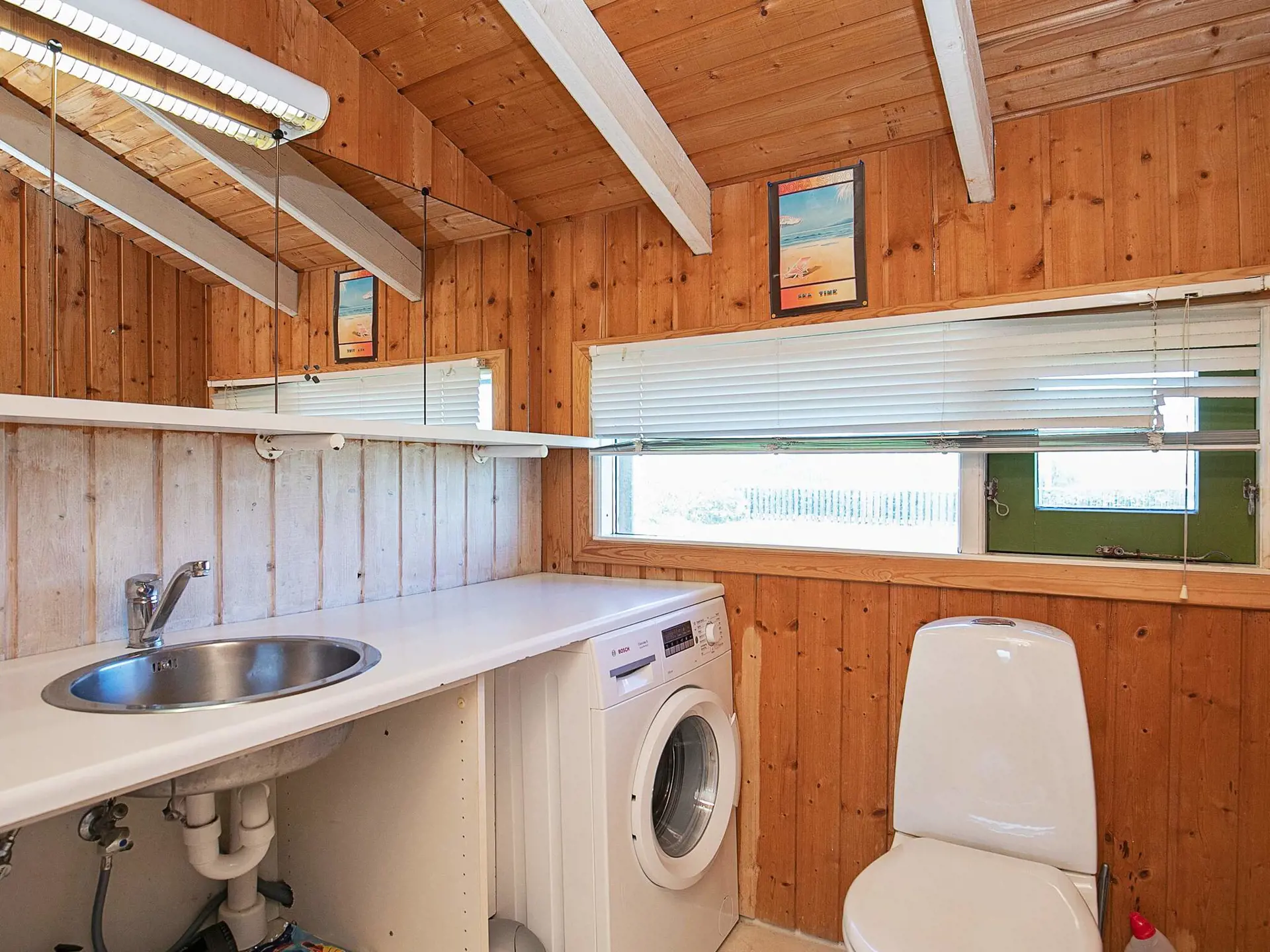Das Ferienhaus hat einen offenen Küchen-/Wohnbereich für das Familienleben, inklusive Essbereich. Auch vom Wohnzimmer aus hat man Ausblick zum Meer und zudem Zugang zur Terrassenfläche davor. Es gibt zwei Schlafzimmer mit je einem Doppelbett sowie ein drittes Schlafzimmer mit Etagenbett. Zudem stehen zwei Badezimmer zur Verfügung, von denen sich eines im Wellnessbereich des Hauses befindet, der über einen verglasten Flur mit dem Haus verbunden ist. Dort findet man auch einen Holzofen und ein Sofa vor, das zum Entspannen einlädt, wobei Sie den Ausblick zur Nordsee genießen können.