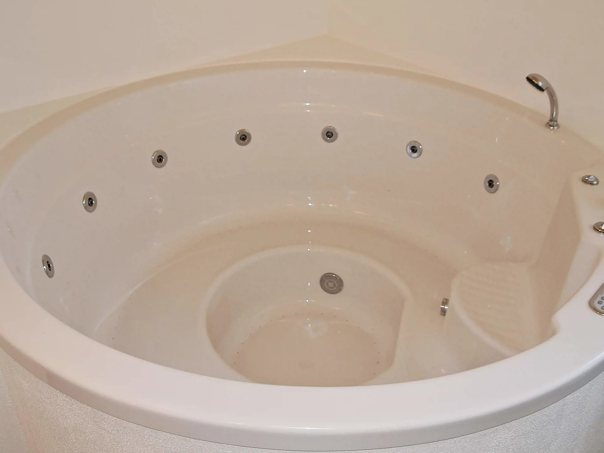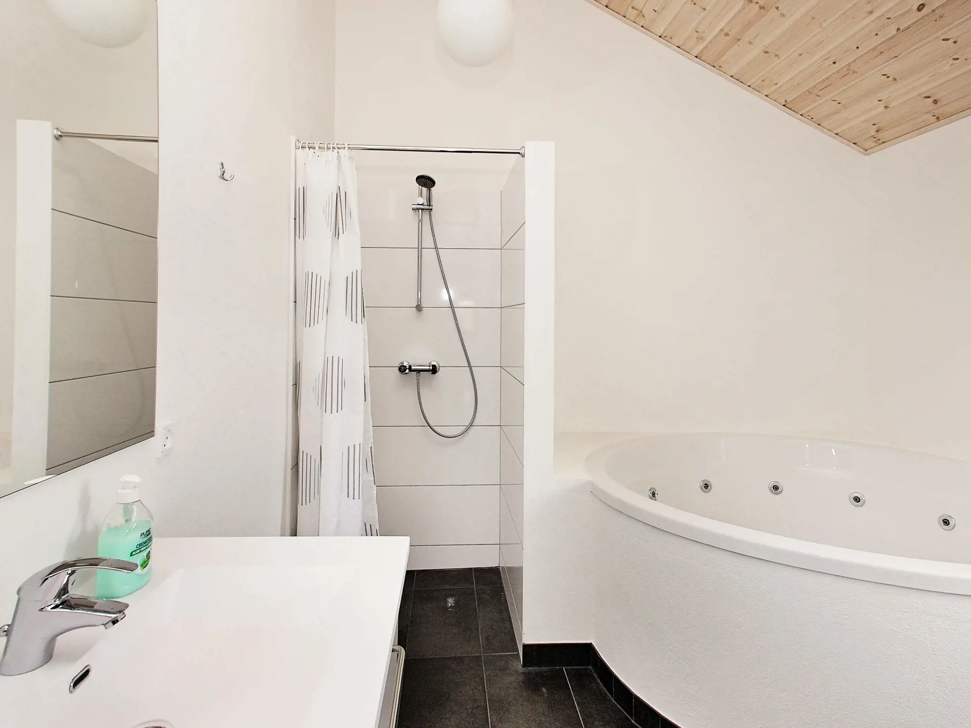 sowie ein Badezimmer mit in den Boden eingelassenem Whirlpool für 5