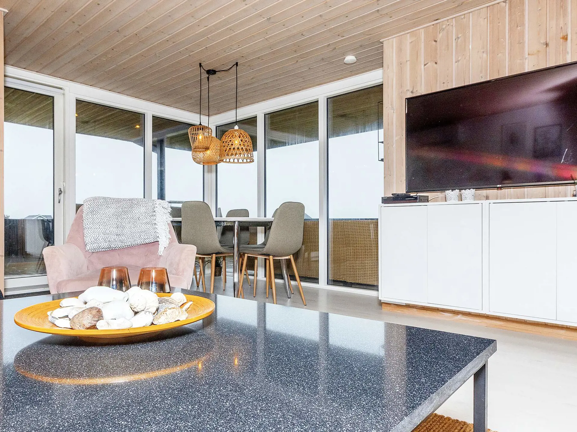 Das Ferienhaus ist gepflegt und geräumig. In der Küche wie auch im Rest des Hauses finden sich alle modernen Annehmlichkeiten, die zu einem erholsamen Aufenthalt beitragen. Wenn die warmen Sommerabende sich dem Ende zu neigen, können Sie es sich vor dem prasselnden Feuer im Holzofen oder in der Sauna des Hauses gemütlich machen. Das Haus eignet sich auch für einen Mehrfamilienurlaub. Smart-TV mit sowohl dänischen als auch deutschen Sendern.