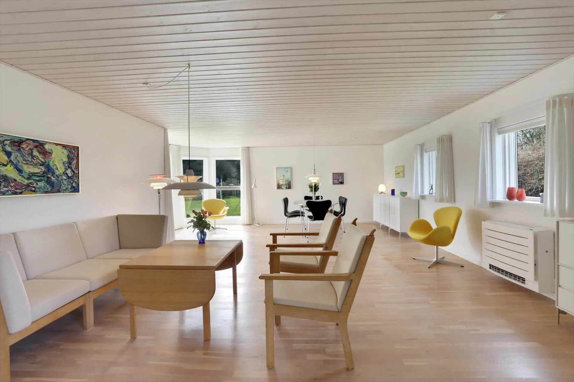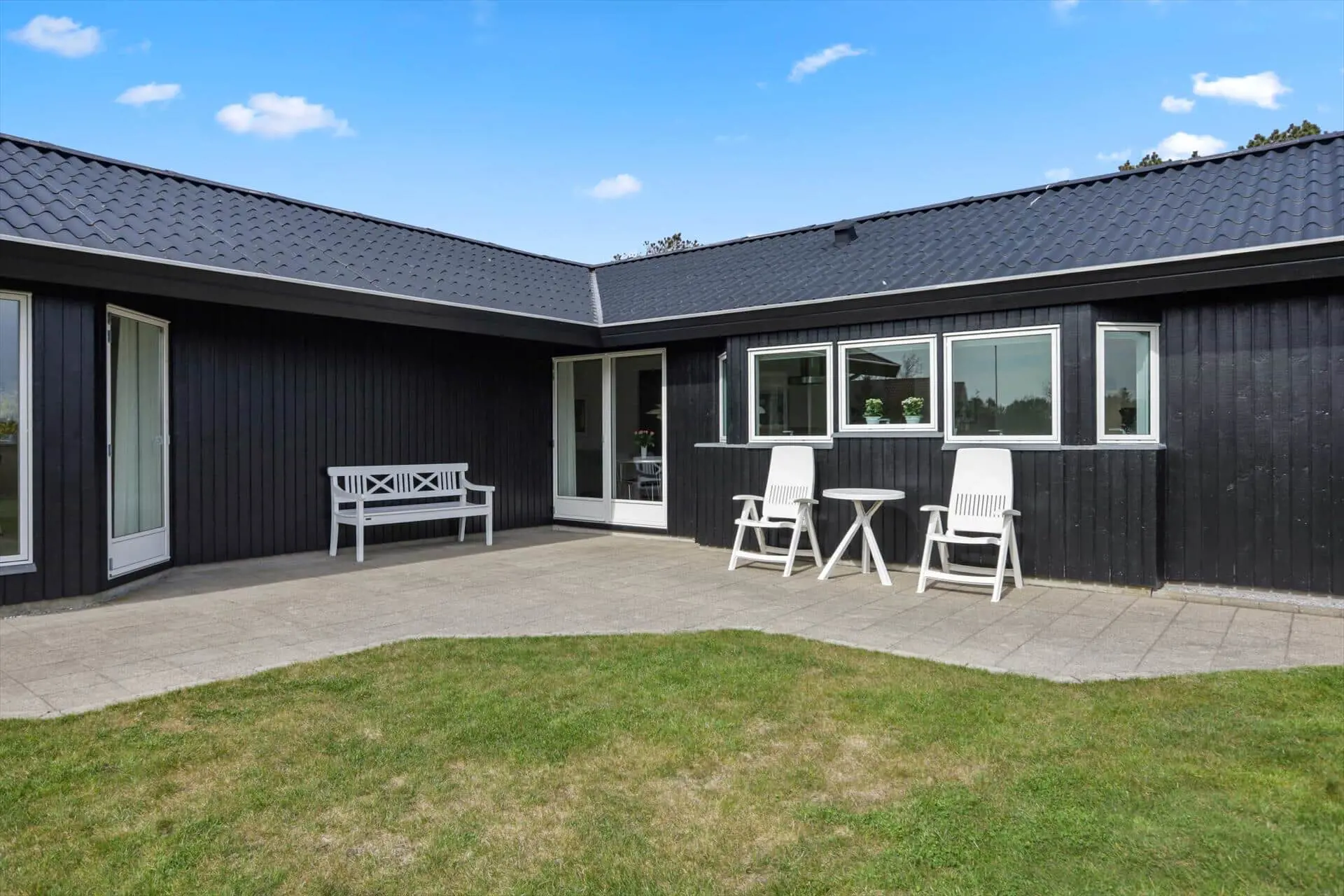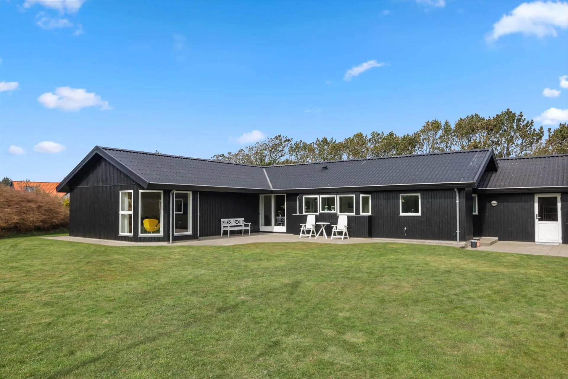 Das Ferienhaus bietet eine helle und großzügige Atmosphäre, in der das Beisammensein im Mittelpunkt steht. Das große Wohnzimmer ist der natürliche Treffpunkt des Hauses – mit Platz für Entspannung und gemeinsame Mahlzeiten. Hier kannst du dich nach einem Tag am Strand auf dem Sofa zurücklehnen, während die Abendsonne golden durch die Fenster scheint. Die offene Verbindung zur Küche macht es leicht, zusammen zu sein – auch während des Kochens. Das Haus verfügt über zwei Badezimmer, was für hohen Komfort sorgt, wenn Familie oder Freunde gemeinsam Urlaub machen, und ein praktischer Hauswirtschaftsraum mit Waschmaschine und Trockner erleichtert die täglichen Aufgaben. Alles ist in einem schlichten, funktionalen Stil eingerichtet, sodass du dich vom ersten Tag an wie zu Hause fühlst.