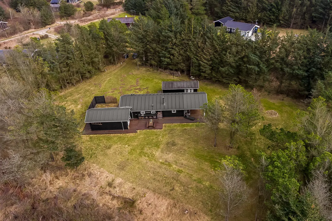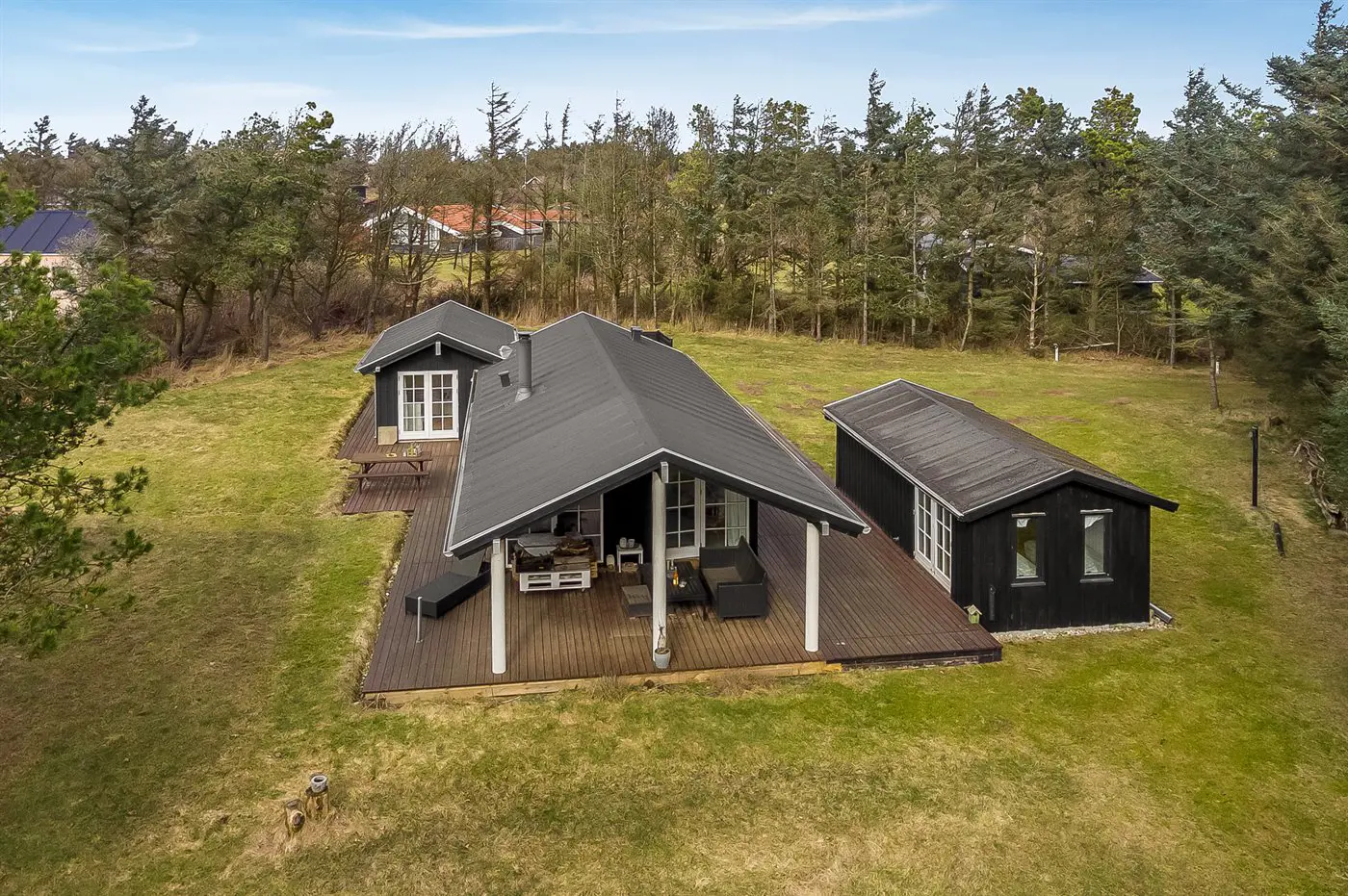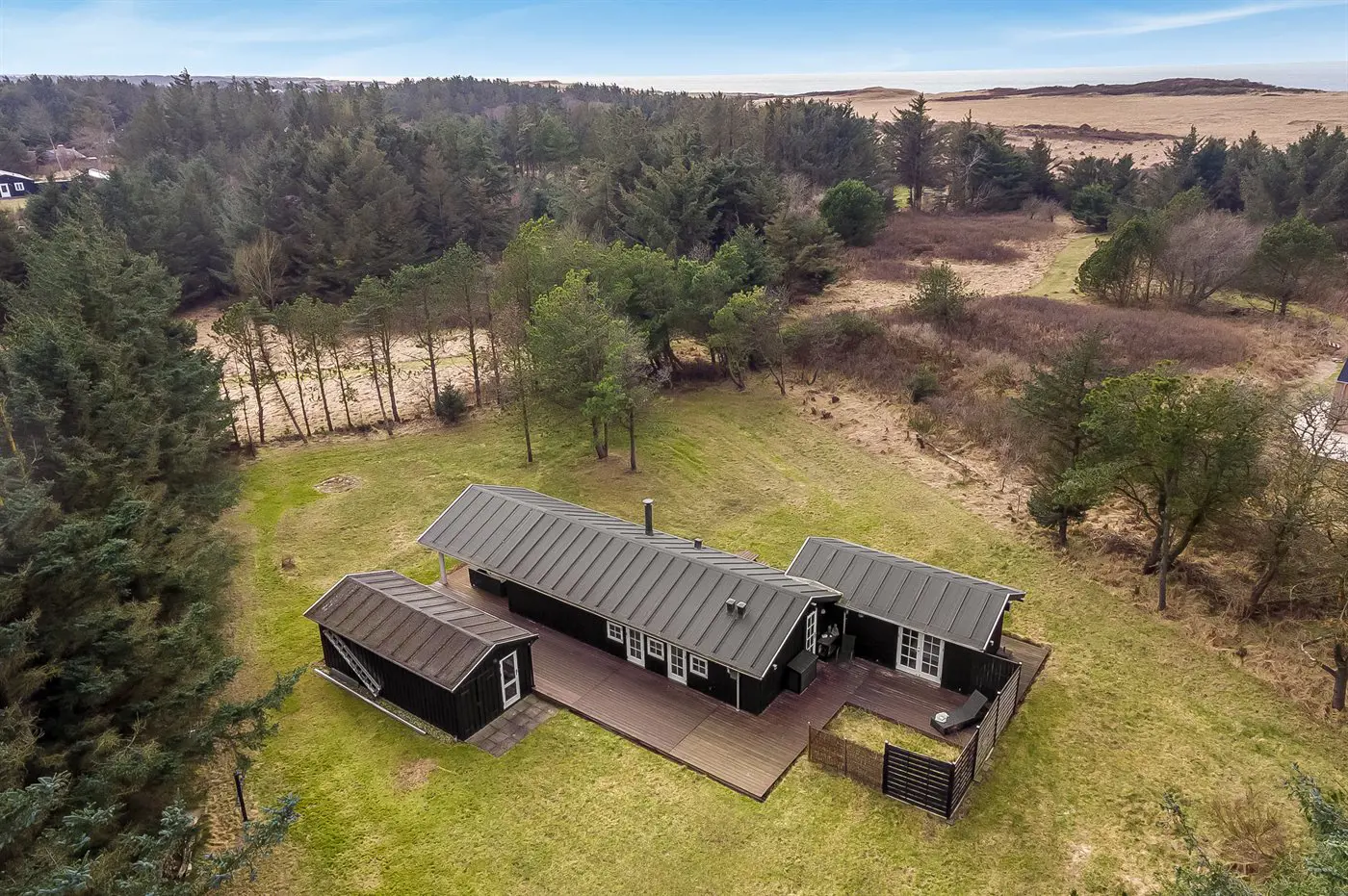 Die Ferienunterkunft liegt auf einem 2065 m² großen Naturgrundstück. Die Entfernung zum Meer beträgt 300 m. Die nächste Einkaufsmöglichkeit liegt 7000 m entfernt. Es steht ein offenes Terrassenareal zur Verfügung. Außerdem gibt es überdachte Terrasse. Geräteraum.Lagerfeuerstelle. Außendusche. Es beteht die Möglichkeit das Essen in der Außenküche zuzubereiten. Es steht ein Grill zur Verfügung. Parkplatz auf dem Grundstück.