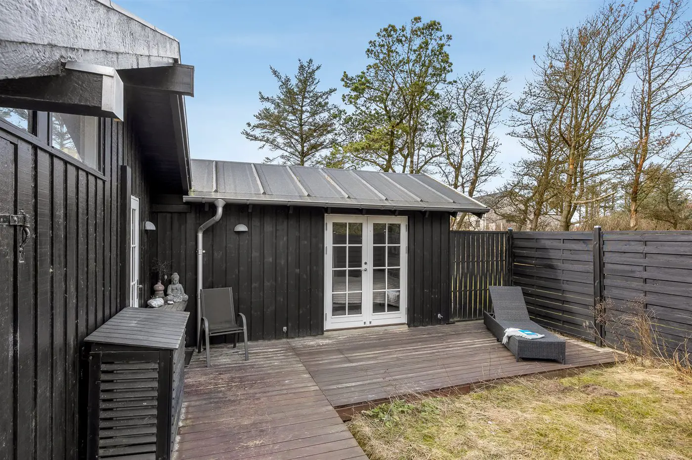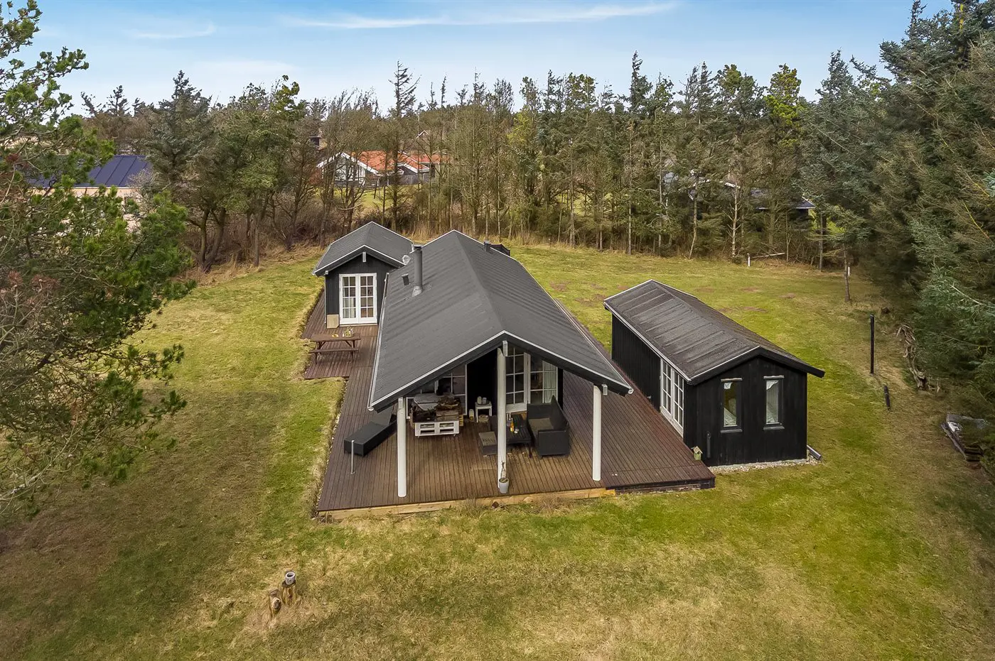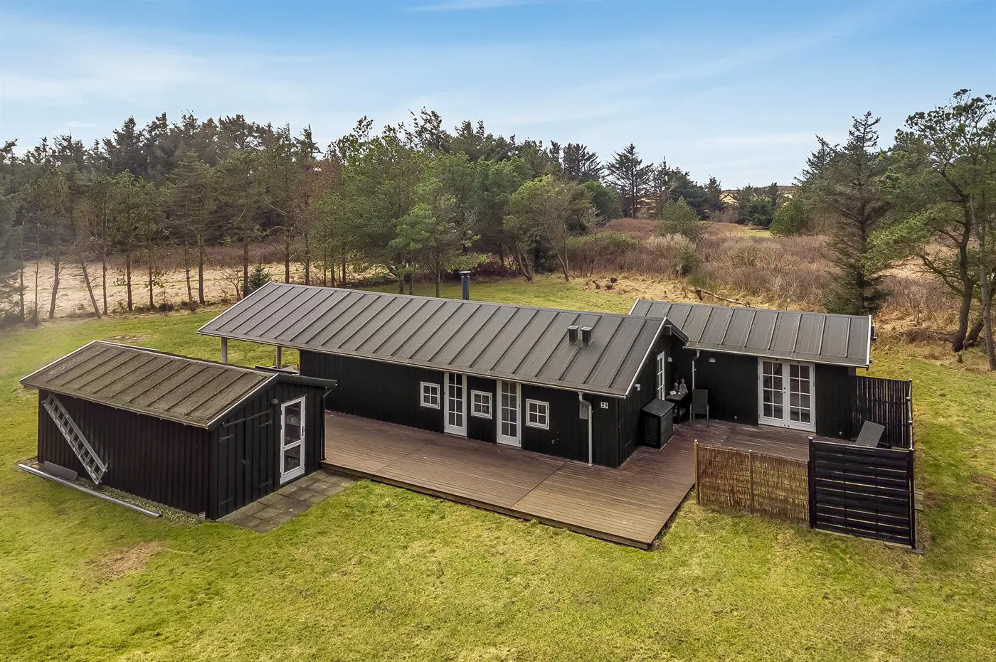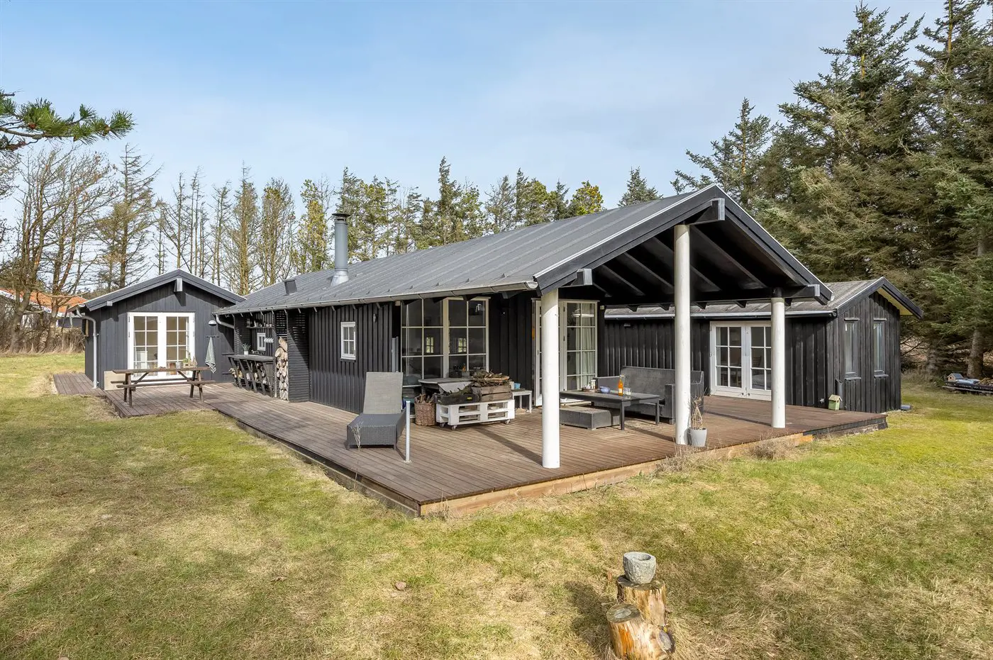 Die Ferienunterkunft liegt auf einem 2065 m² großen Naturgrundstück. Die Entfernung zum Meer beträgt 300 m. Die nächste Einkaufsmöglichkeit liegt 7000 m entfernt. Es steht ein offenes Terrassenareal zur Verfügung. Außerdem gibt es überdachte Terrasse. Geräteraum.Lagerfeuerstelle. Außendusche. Es beteht die Möglichkeit das Essen in der Außenküche zuzubereiten. Es steht ein Grill zur Verfügung. Parkplatz auf dem Grundstück.