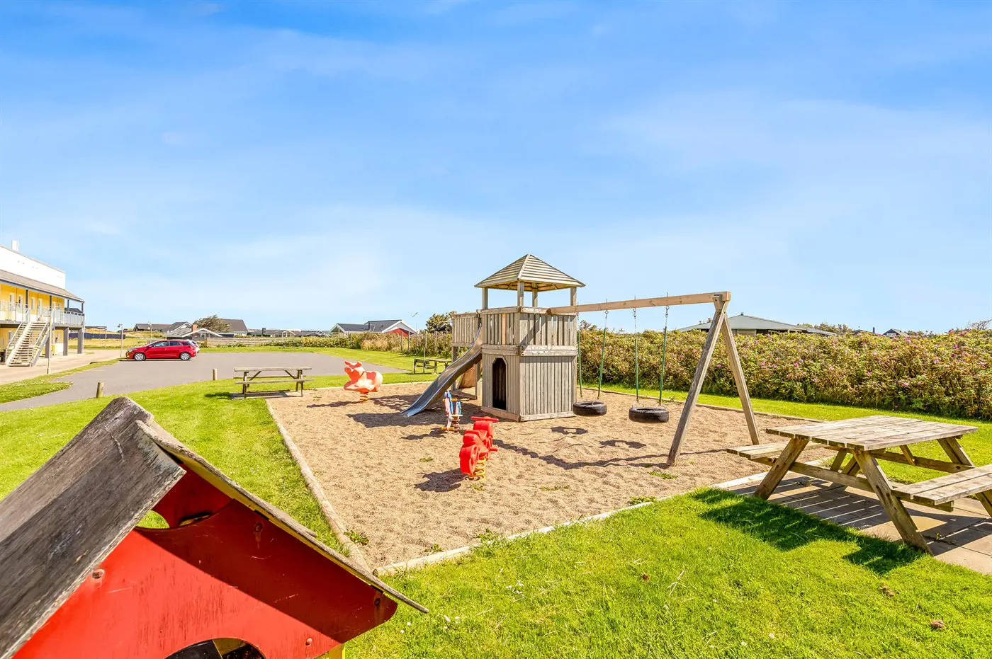 Ferienwohnung in Nr. Lyngby, ein schönes Ferienhausgebiet an der Westküste zwischen Løkken und Lønstrup. Nr. Lyngby ist für ihr Steilufer und den schönen Sandstrand bekannt. Zu Ferienanlage gehört ein gemeisamer Schwimmingpool sowie ein Kinderpool die im Zeitraum ultimo Juni bis ultimo August zugänglich sind. Guter Spielplatz für die Kinder auf dem Gemeinschaftsareal. Im Gemeinschaftsgebäude stehen Washmaschinen und Wäschetrockner kostenlos zur Verfügung.