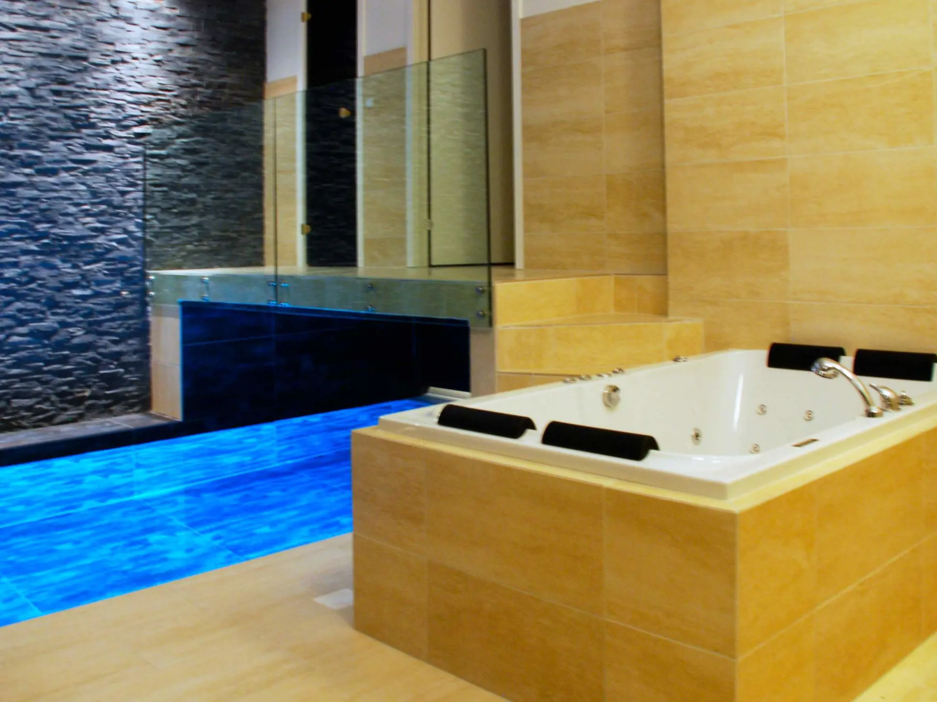 Nach dem anstrengenden Schwimmtraining gegen die Gegenstromanlage des Pools laden Sauna oder Whirlpool zum Entspannen in angenehm warmer Umgebung ein.