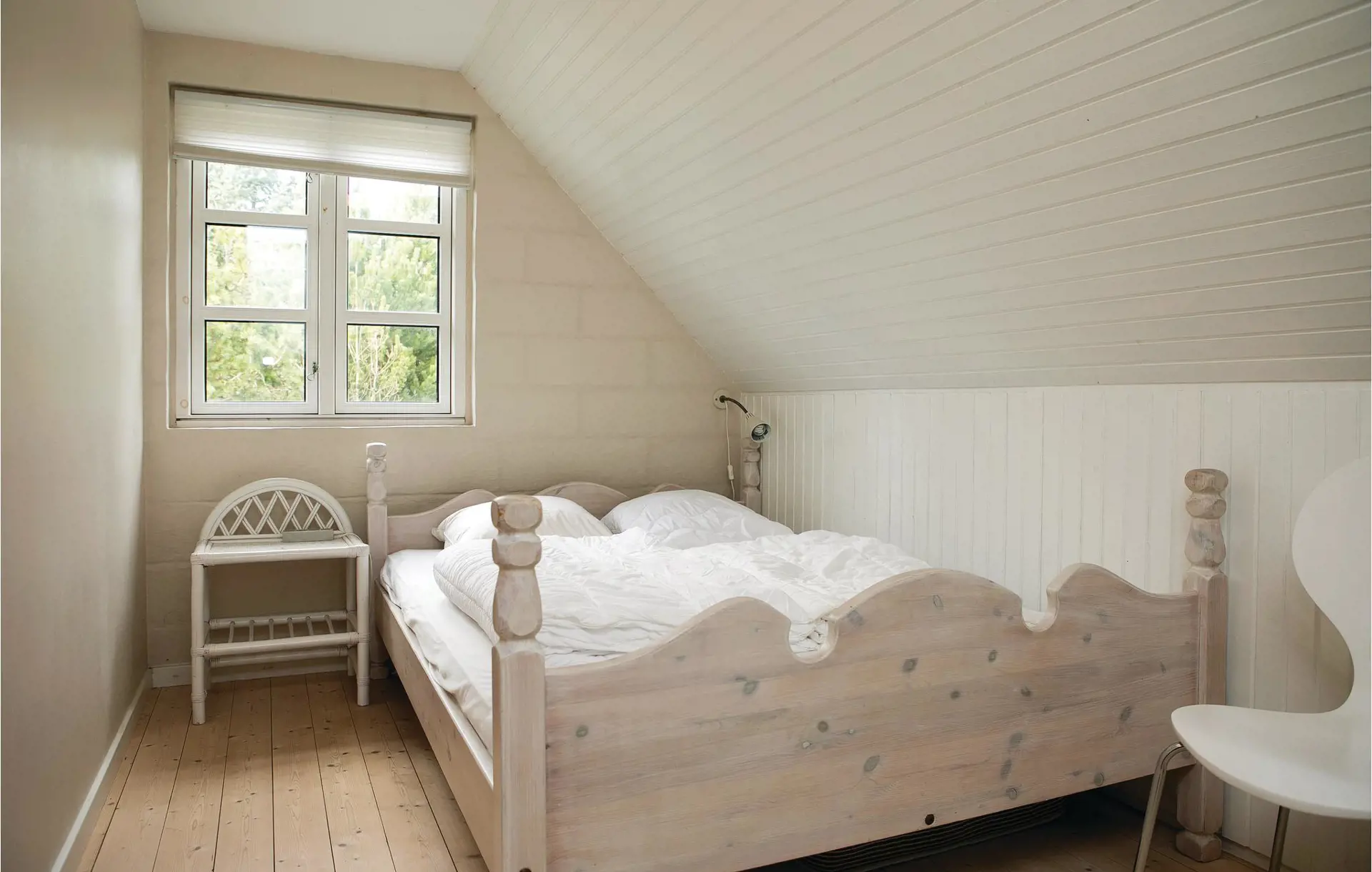 Auf einem Waldgrundstück mit schönen windgeschützten Ecken liegt dieses wirklich gemütliche Ferienhaus mit heller Möblierung und einem schönen Lichteinfall durch die großen Fenster im Wohnzimmer. Das Haus verfügt über eine kleinere, gute Küche mit Verbindung zum Essbereich. Im 1. Stock befinden sich drei Schlafzimmer,zwei davon Haben einen Zugang zur überdachten Terrasse.