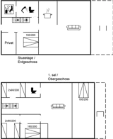 Die Schlafplätze verteilen sich auf 5 Schlafräume. 6 Schlafplätze in Doppelbetten. 3 Schlafplätze in Einzelbetten.