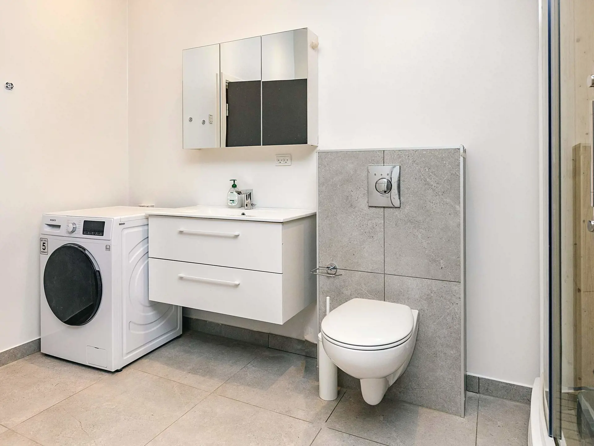 Im Inneren empfängt Sie ein stilvolles, skandinavisches Interieur, das Licht, Luft und Komfort vereint. Machen Sie es sich am großen Esstisch gemütlich, wo man gemeinsam isst und sich unterhält, oder entspannen Sie sich mit einem Buch oder Strickzeug auf dem Sofa. Auch der Fernseher sorgt für Unterhaltung. Durch die großen Fenster strömt Tageslicht herein und schafft eine ganz besondere Atmosphäre im Wohnzimmer. Das Ferienhaus verfügt zudem über eine große Wohnküche, drei Schlafzimmer, zwei Badezimmer und einen Mehrzweckraum.