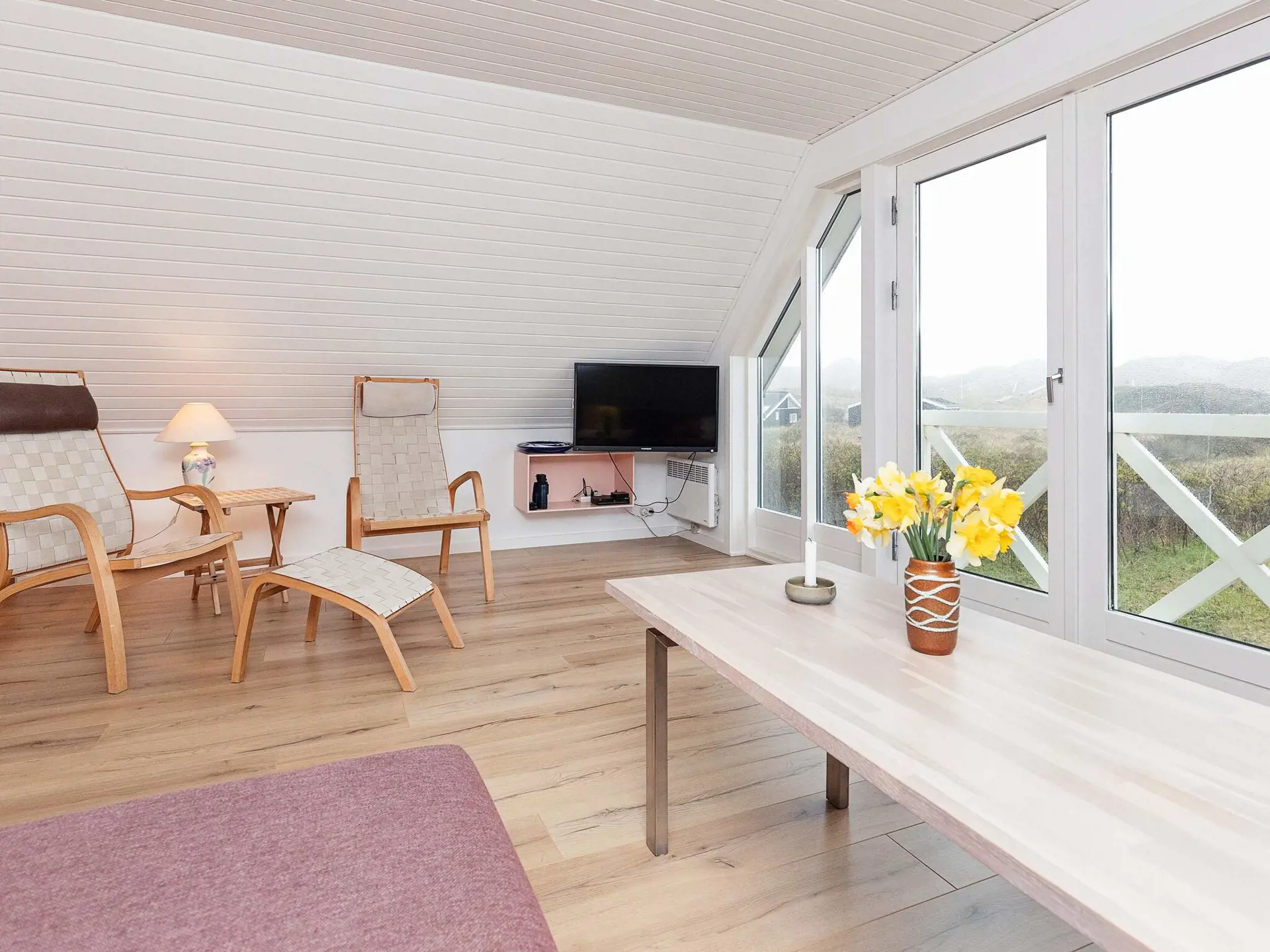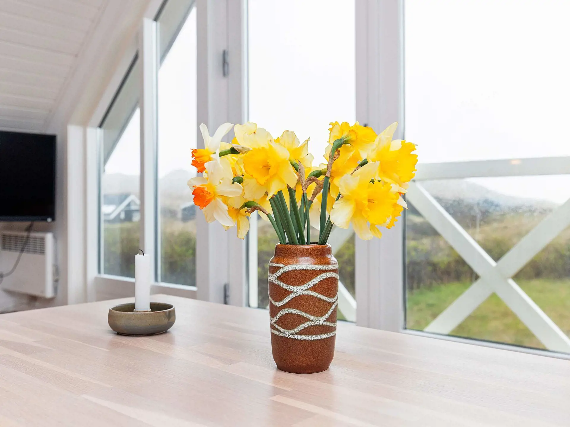 Nur etwa 250 m vom nächsten Strandufer entfernt und mit Meerblick vom Wohnzimmer oben im 1. Stock findet man dieses geräumige Ferienhaus. Es steht als letztes Haus vor der Küste und somit ganz nahe des herrlichen Nordseestrandes. Das Ferienhaus liegt zudem in guter Entfernung zur Straße, die vom Strand nach Saltum führt.