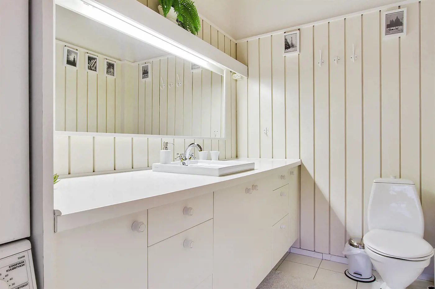 Das Haus ist hell, geräumig und mit Hinblick auf Komfort und Ausblick eingerichtet. Die großen Fensterfronten und die hohe Decke lassen die Natur förmlich ins Haus herein, und die versetzten Ebenen bieten von jedem Aufenthaltsraum aus einen einzigartigen Ausblick. Hier findest du eine große, offene Wohnküche und ein Wohnzimmer, das sich leicht über das Gelände erhebt und von dem aus du den Panoramaausblick genießen kannst.