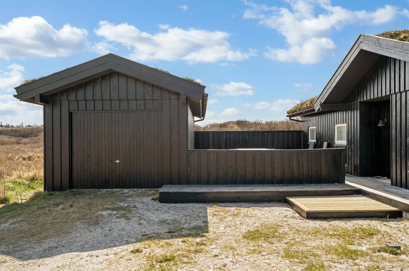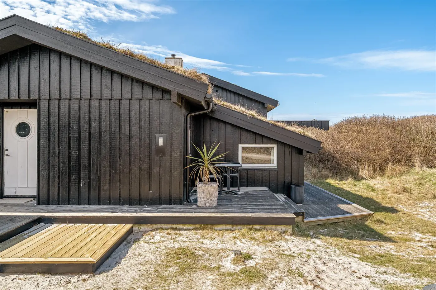 Die Ferienunterkunft liegt auf einem 2925 m² großen Dünengrundstück. Die Entfernung zum Meer beträgt 45 m. Die nächste Einkaufsmöglichkeit liegt 1000 m entfernt. Es steht ein 50 m² Terrassenareal zur Verfügung. Außerdem gibt es 20 m² überdachte Terrasse. Parkplatz auf dem Grundstück.
