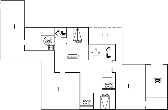 Das Ferienhaus eignet sich für 8 Personen sowie 1 Kleinkind bis zu 3 Jahren. Die Ferienunterkunft hat eine Wohnfläche von 119 m² und wurde 1984 gebaut. 2002 wurde die Ferienunterkunft teilweise renoviert. Haustiere dürfen nicht mitgebracht werden. Die Ferienunterkunft ist mit energiesparender Wärmepumpe ausgestattet. Die Ferienunterkunft ist mit Waschmaschine ausgestattet. Wäschetrockner. Tiefkühlmöglichkeit mit 90 Liter Nutzinhalt. Es gibt außerdem einen Kaminofen.Es gibt außerdem 2 Kamine. Für die jüngsten Feriengäste sind 2 Kinderhochstühle vorhanden.