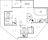 Die Schlafplätze verteilen sich auf 4 Schlafräume. 4 Schlafplätze in Doppelbetten. 4 Schlafplätze in Einzelbetten. 4 Schlafplätze auf Matratzen. 4 von diesen Schlafplätzen befinden sich im offenen Obergeschoss.