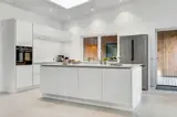 Die Küche ist mit Kühlschrank ausgestattet. Außerdem gibt es 4 Induktions-Kochzonen, Umluftofen sowie Geschirrspüler.