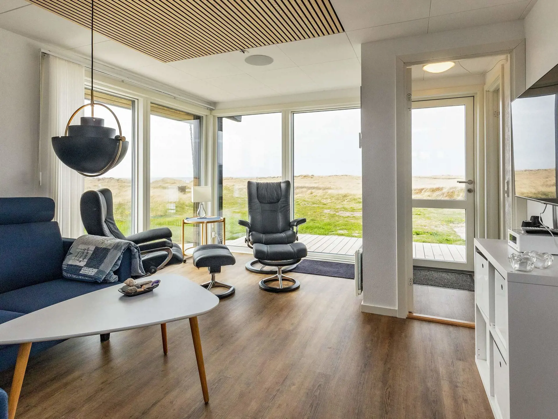 Hell und wohnlich ausgestattetes Ferienhaus mit Meerblick. Liegt vorne in der 1. Dünenreihe, im beliebten Ferienhausgebiet von Skallerup Klit. Die Umgebung hier lädt zum Radfahren, Wandern oder Baden oder Angeln vom nahen Strandufer aus ein.