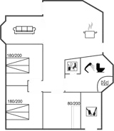 Die Schlafplätze verteilen sich auf 3 Schlafräume. 4 Schlafplätze in Doppelbetten. 2 Schlafplätze in einem Etagenbett. 2 Schlafplätze auf Matratzen. 2 von diesen Schlafplätzen befinden sich im offenen Obergeschoss. Ferner steht ein Kinderbett zur Verfügung.