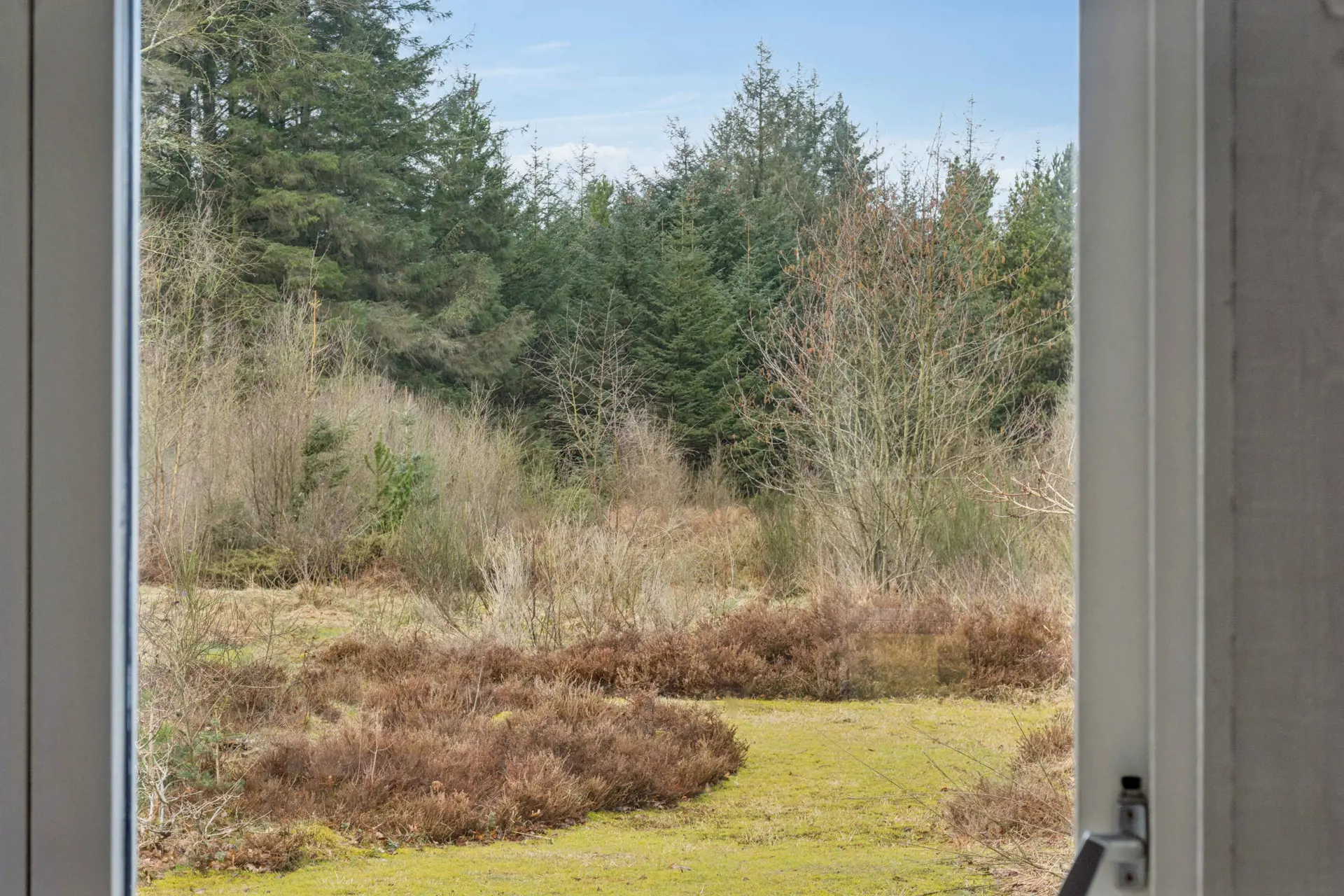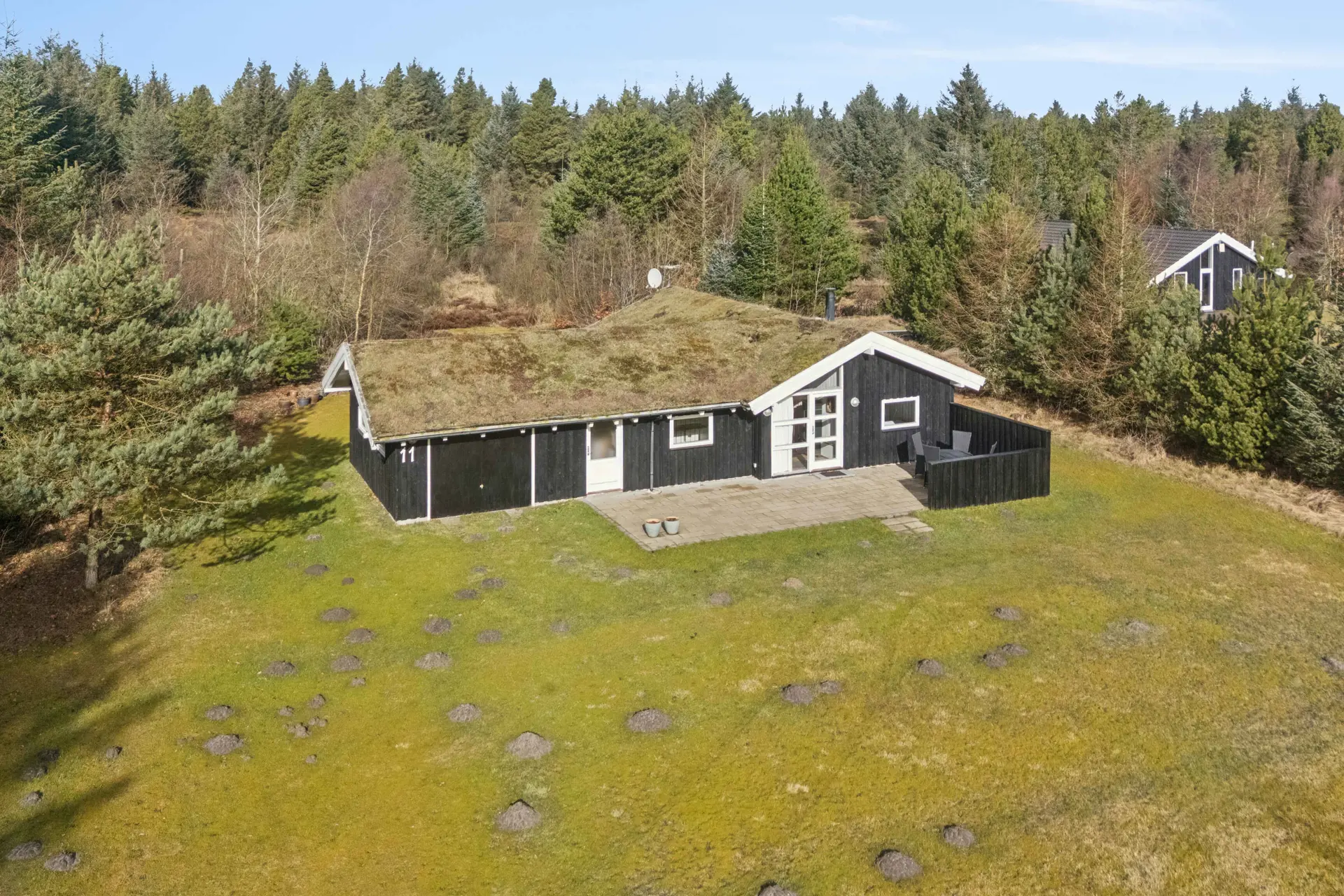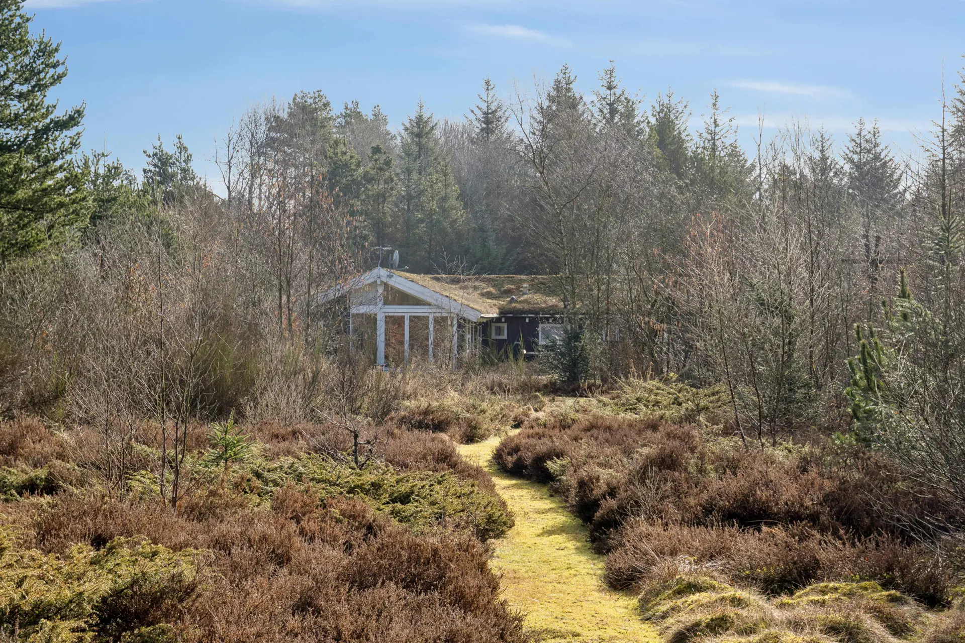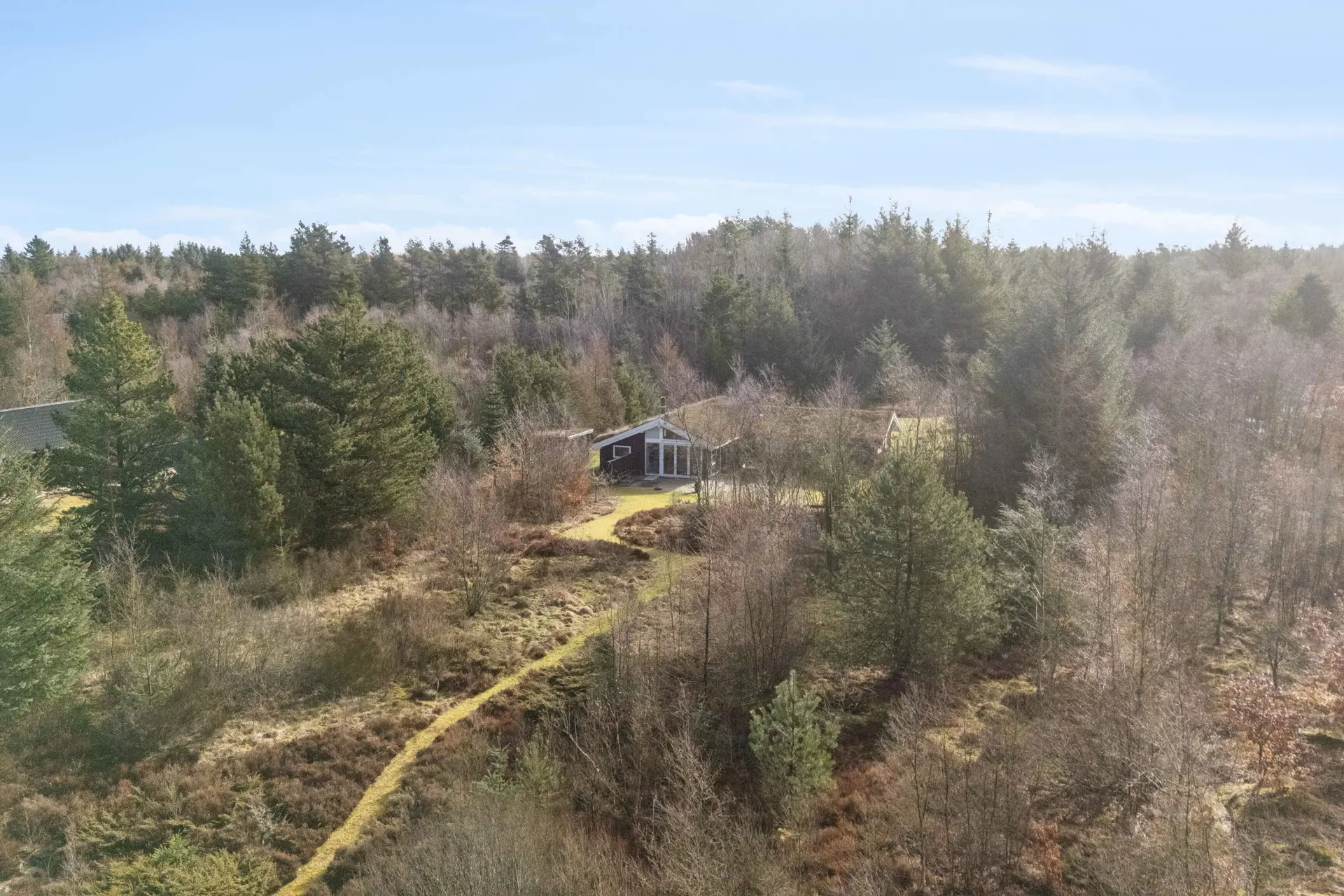 Die Lage ist ruhig und abgeschieden mit Zugang zu Waldwegen. Der Strand liegt ca. 3,5 km entfernt, Einkaufsmöglichkeiten ca. 2 km. Natur, Privatsphäre und kurze Wege machen diese Lage besonders attraktiv.