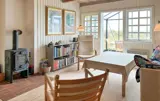 Warme Holztöne, liebevolle Details und viel Licht schaffen eine besonders gemütliche Atmosphäre. Der offene Wohn- und Essbereich lädt zu entspannten Stunden ein – ob auf dem Sofa mit Blick in die Natur oder beim gemeinsamen Essen. Die Küche ist funktional und harmonisch integriert. Ein besonderes Highlight ist der Wintergarten, der zu jeder Jahreszeit einen geschützten Platz mit Aussicht bietet.