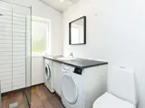 Das Ferienhaus hat zudem zwei Badezimmer mit Toilette, Waschbecken, Dusche und Fußbodenheizung. Es gibt zwei Schlafzimmer mit Doppelbett, zwei weitere mit zwei Einzelbetten sowie zwei Lofts mit je einem Schlafplatz.