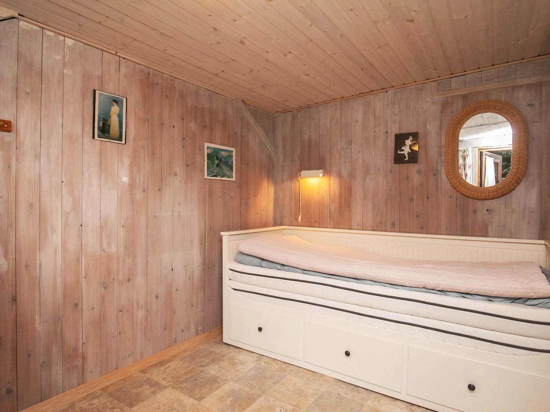 Das Ferienhaus verfügt über ein Schlafzimmer mit Doppelbett und ein Schlafzimmer mit zwei Einzelbetten. Vom Wintergarten/Wohnzimmer gelangen Sie ins Badezimmer mit Dusche. Die offene Küche führt in das Wohnzimmer mit Essbereich, das gemütlich im persönlichen Stil des Eigentümers eingerichtet ist.